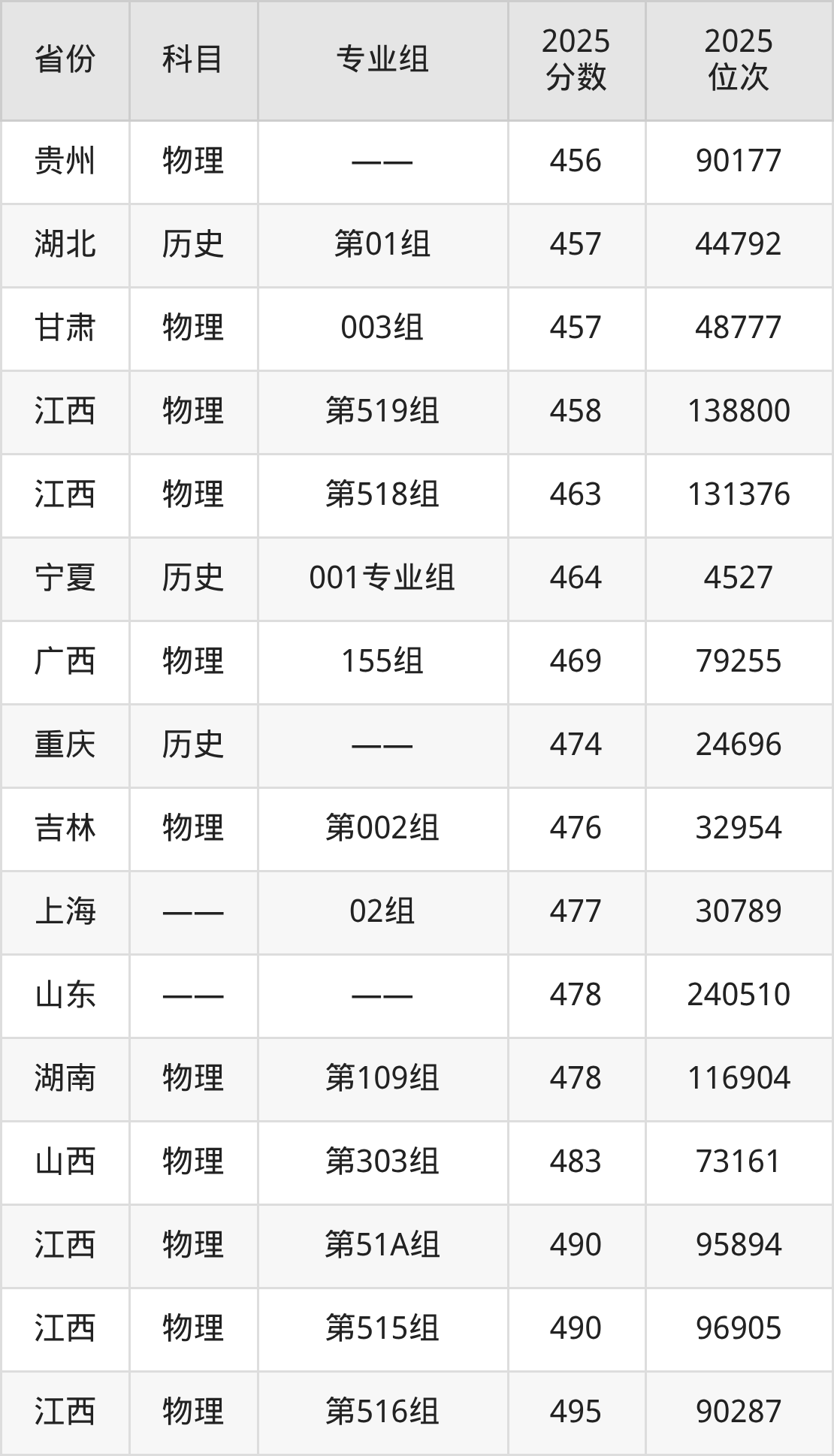 物理类:2025年江西科技师范大学录取最低分是416分(宁夏),对应的位次排名是21119名。