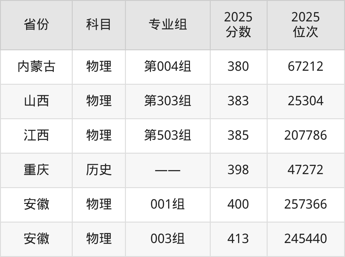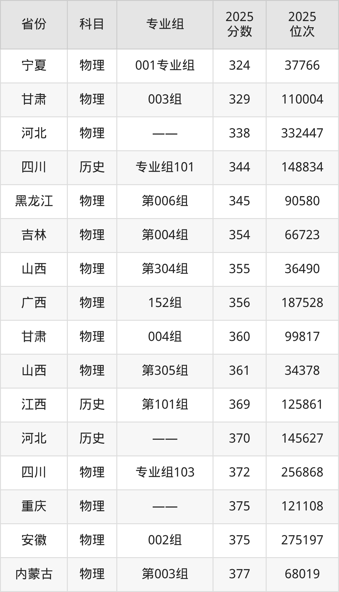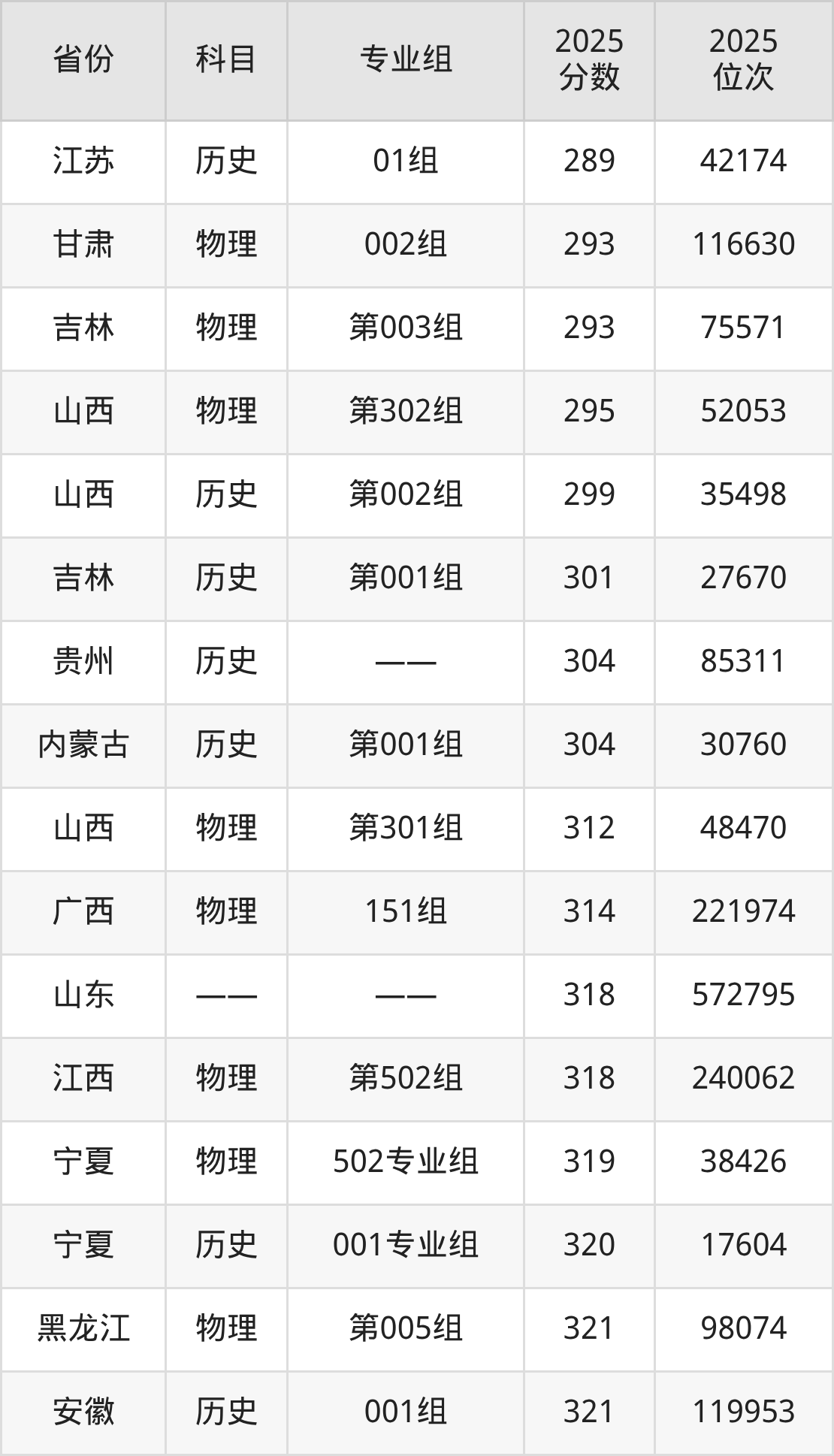 物理类:2025年大兴安岭职业学院录取最低分是150分(四川),对应的位次排名是284789名。