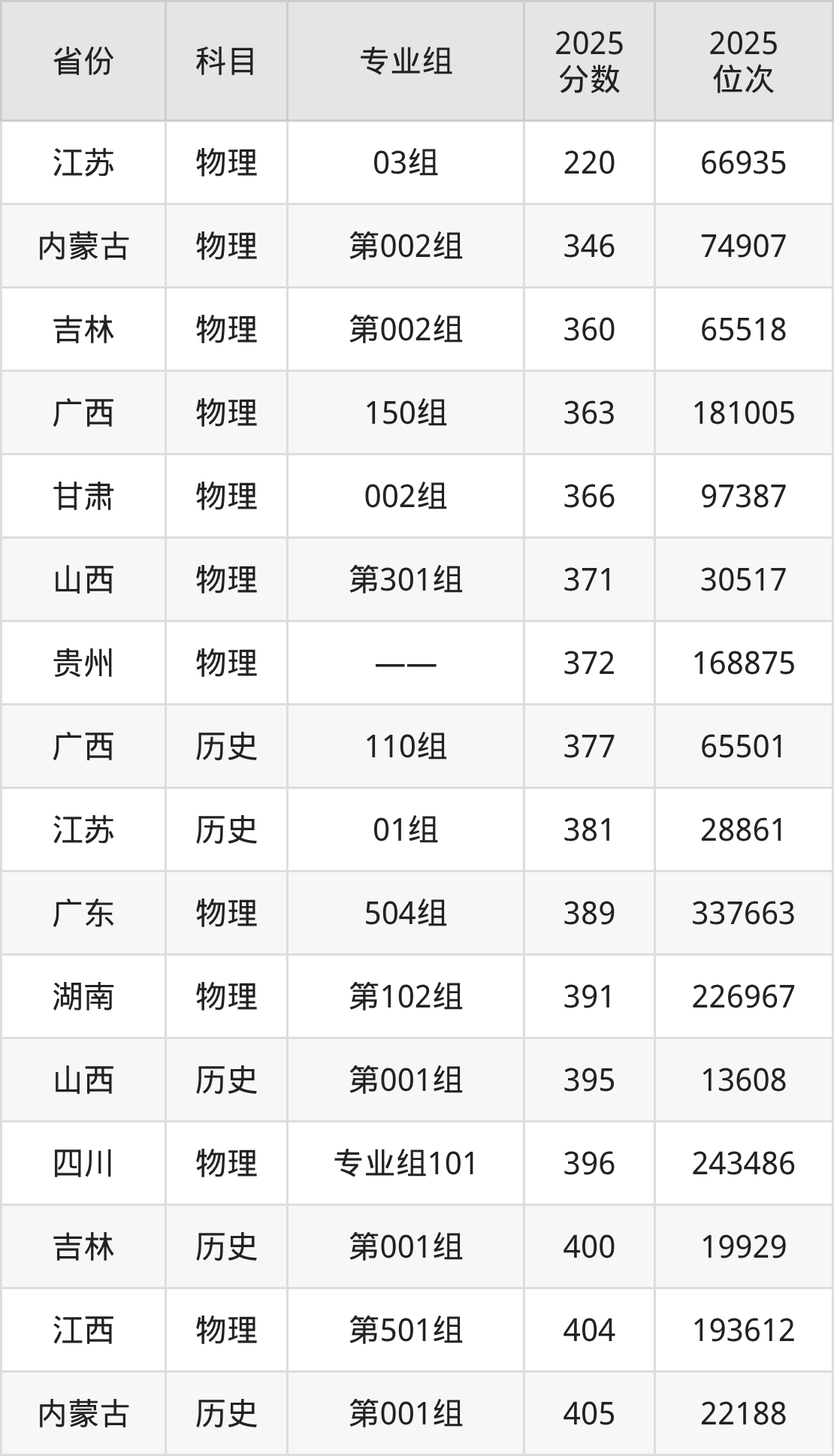 历史类:2025年江苏财经职业技术学院录取最低分是377分(广西),对应的位次排名是65501名。