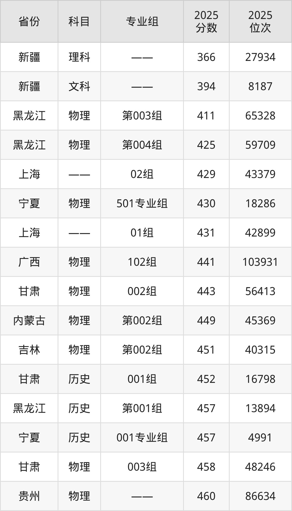 历史类:2025年赣南科技学院录取最低分是452分(甘肃),对应的位次排名是16798名。