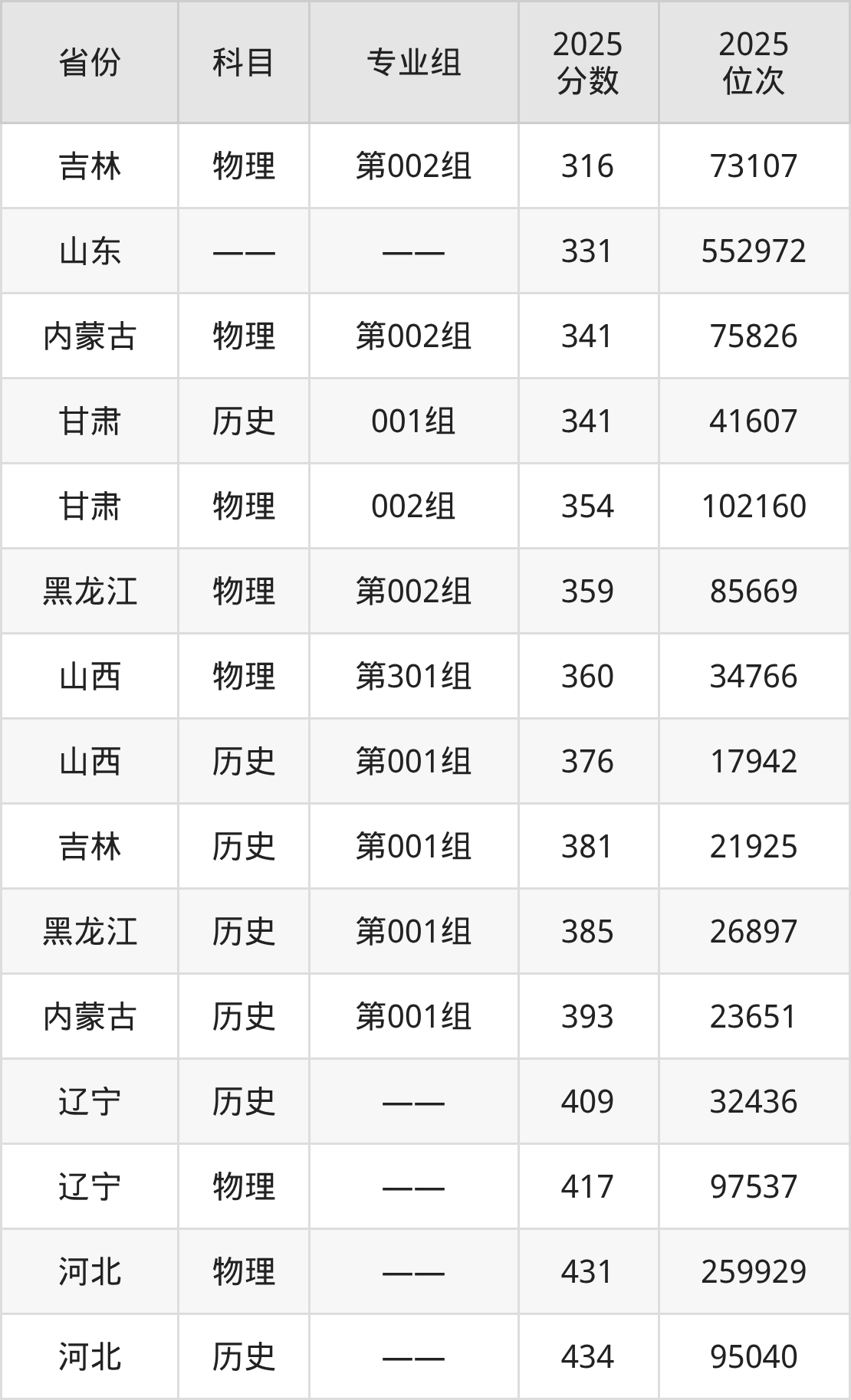 历史类:2025年山东药品食品职业学院录取最低分是341分(甘肃),对应的位次排名是41607名。