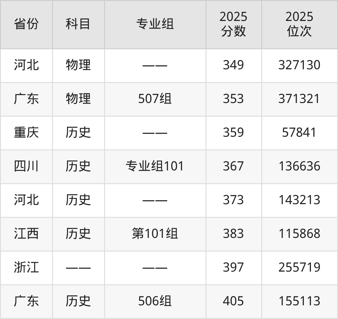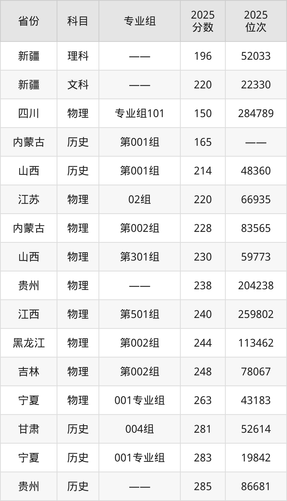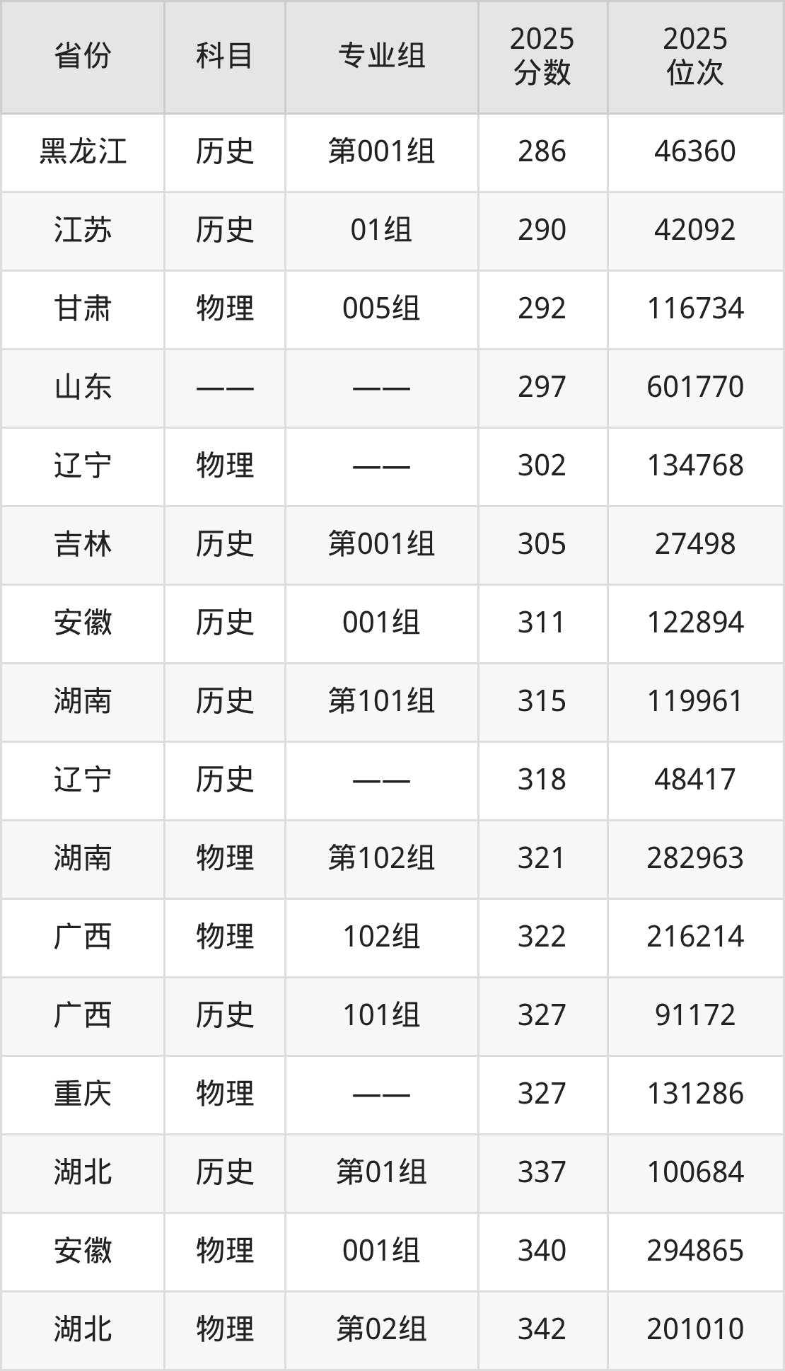 物理类:2025年海南职业技术学院录取最低分是150分(四川),对应的位次排名是284789名。