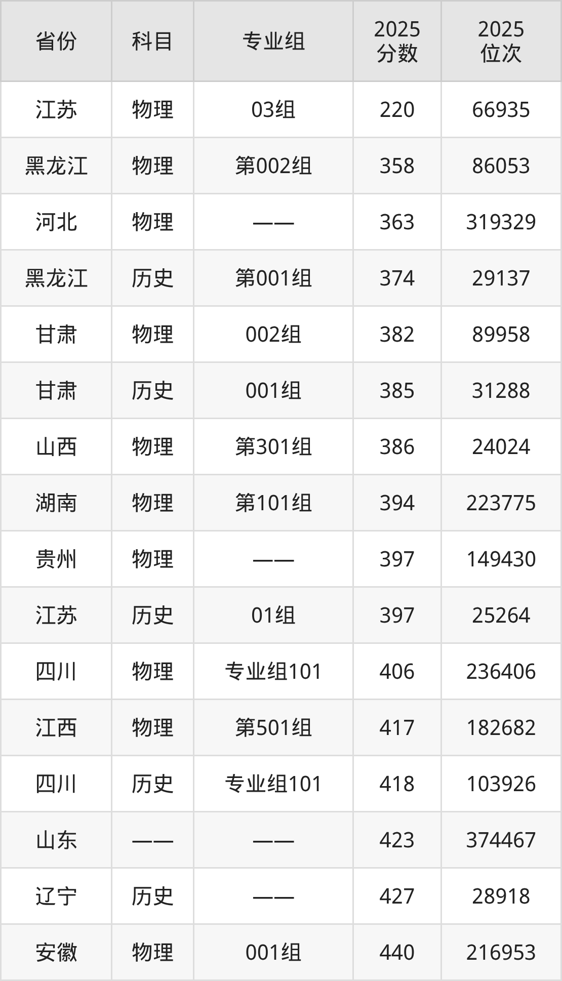 物理类:2025年江苏工程职业技术学院录取最低分是358分(黑龙江),对应的位次排名是86053名。