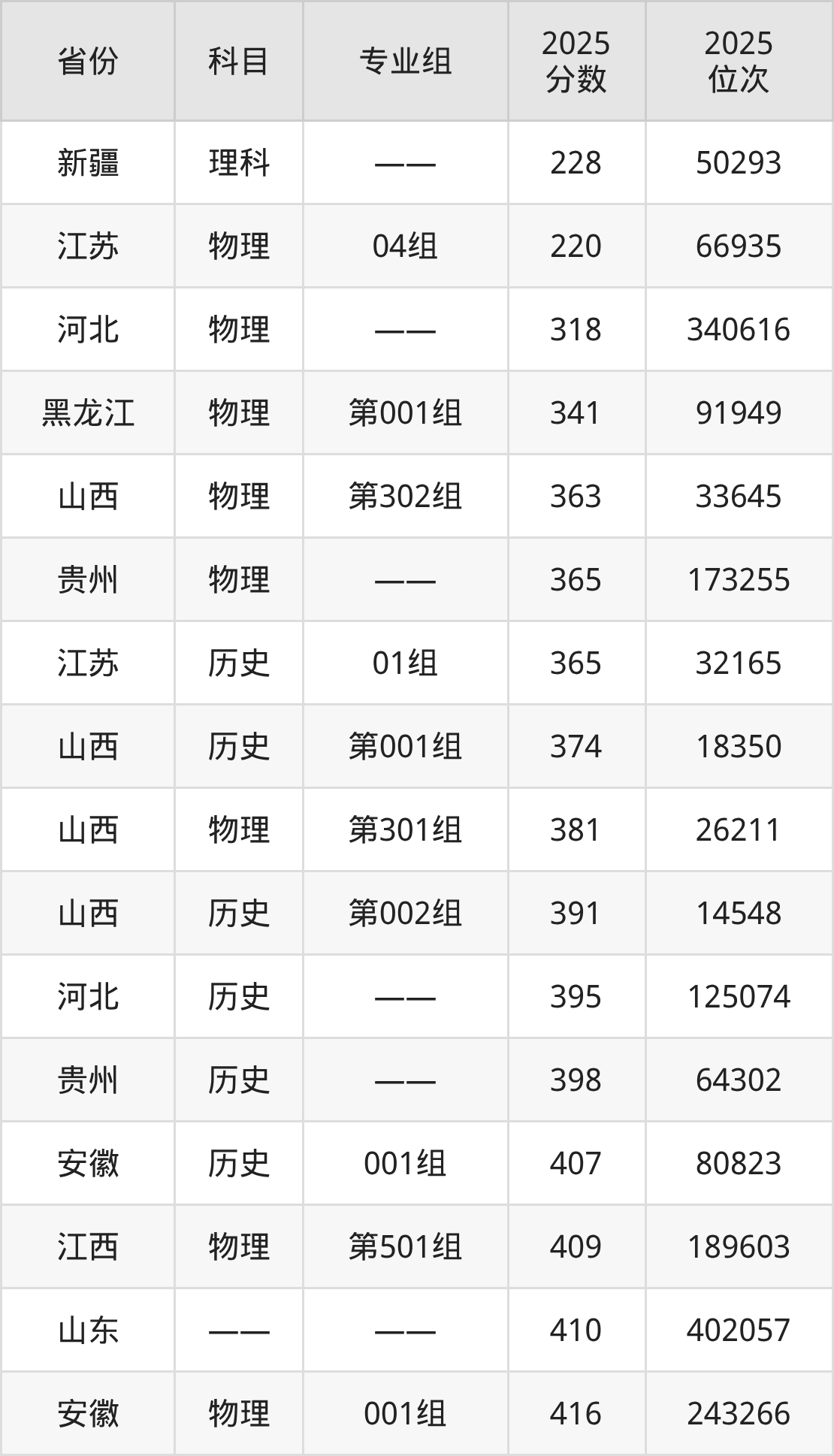 物理类:2025年江苏安全技术职业学院录取最低分是318分(河北),对应的位次排名是340616名。