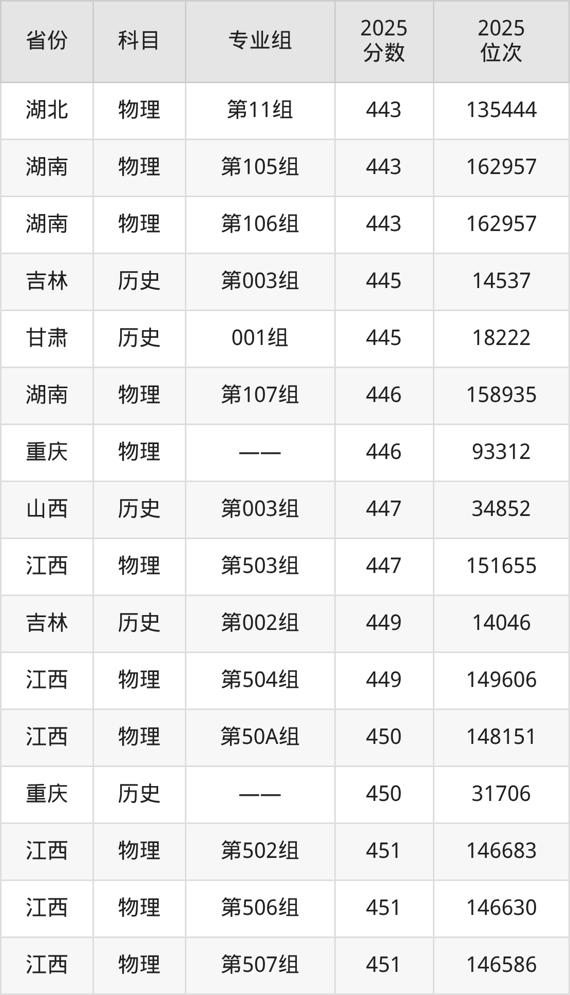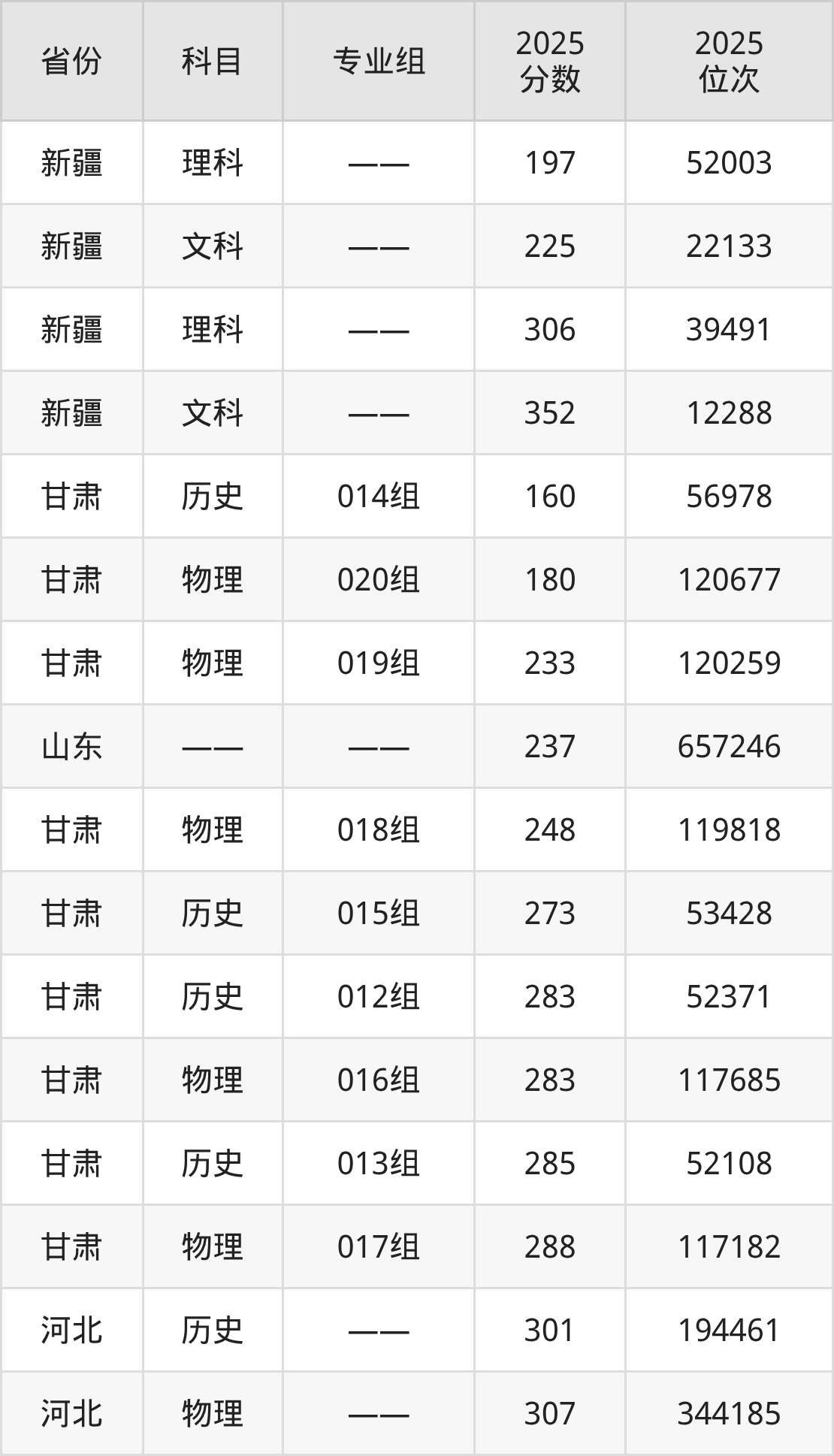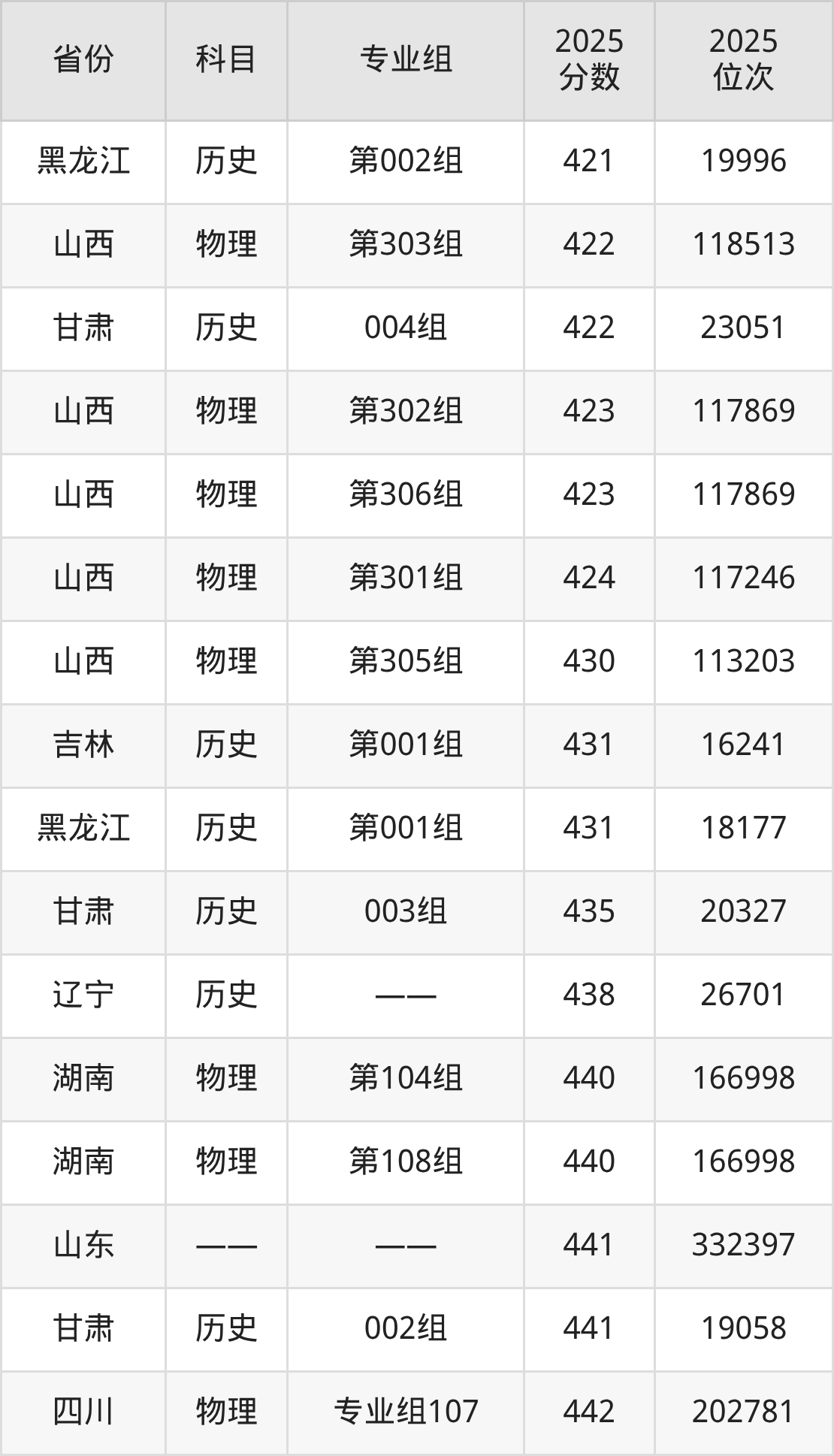 物理类:2025年新疆天山职业技术大学录取最低分是180分(甘肃),对应的位次排名是120677名。