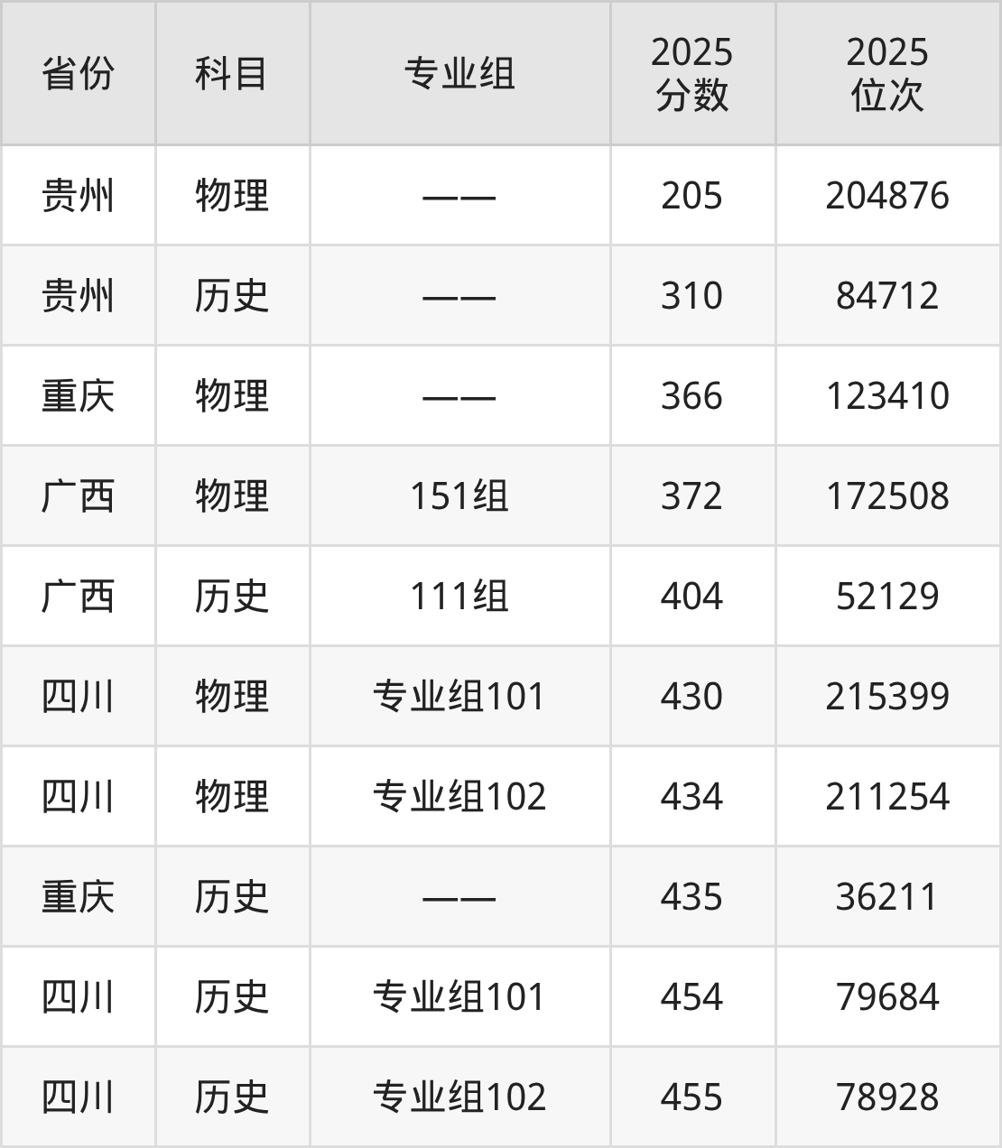 物理类:2025年贵州农业职业学院录取最低分是366分(重庆),对应的位次排名是123410名。