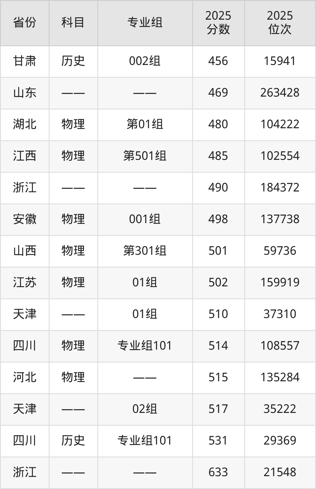 3+3地区:2025年兰州工业学院录取最低分是469分(山东),对应的位次排名是263428名。
