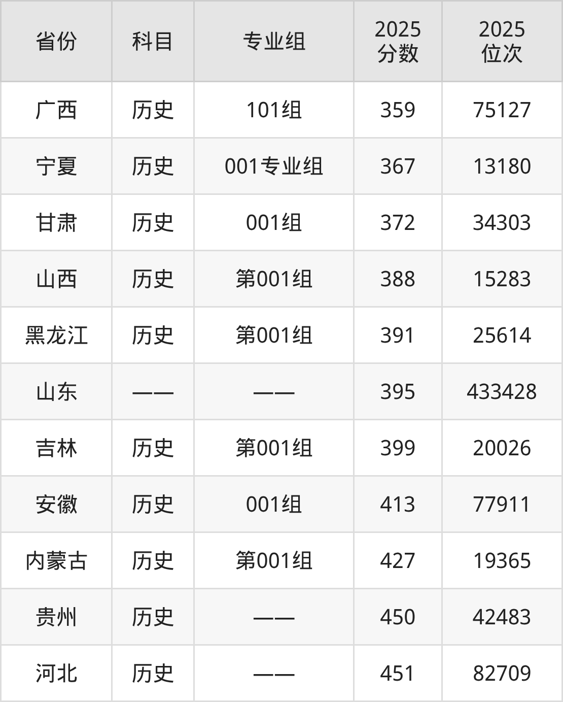 历史类:2025年山东司法警官职业学院录取最低分是359分(广西),对应的位次排名是75127名。