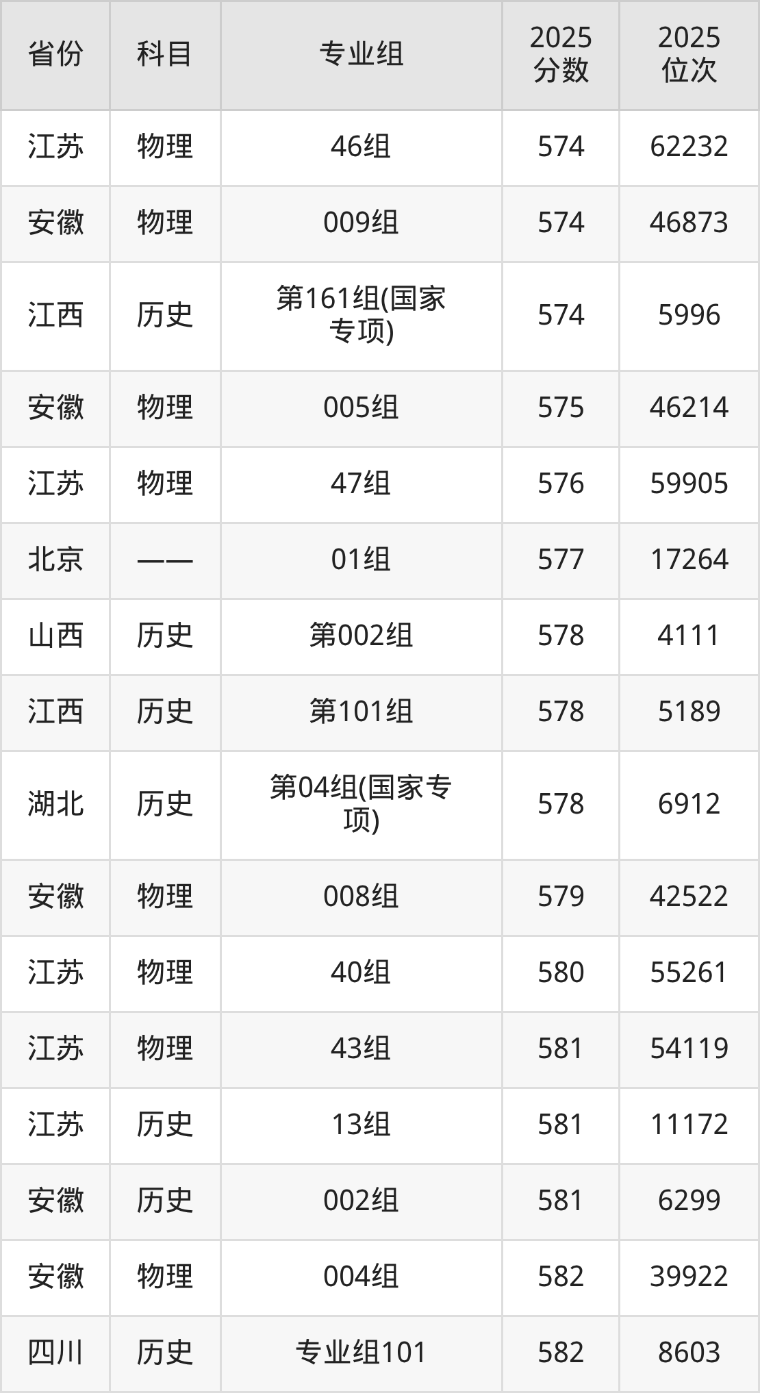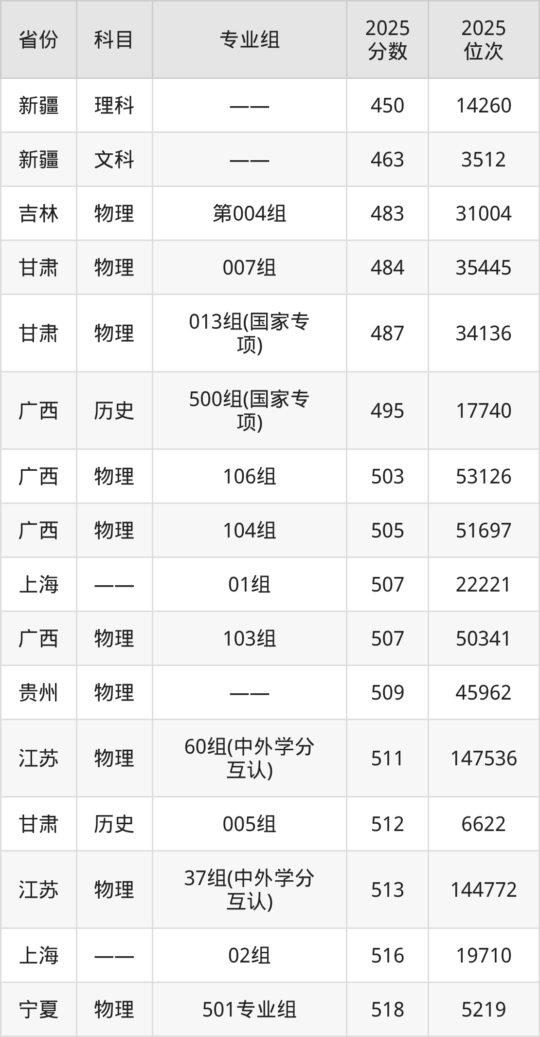 理科:2025年扬州大学录取最低分是450分(新疆),对应的位次排名是14260名。