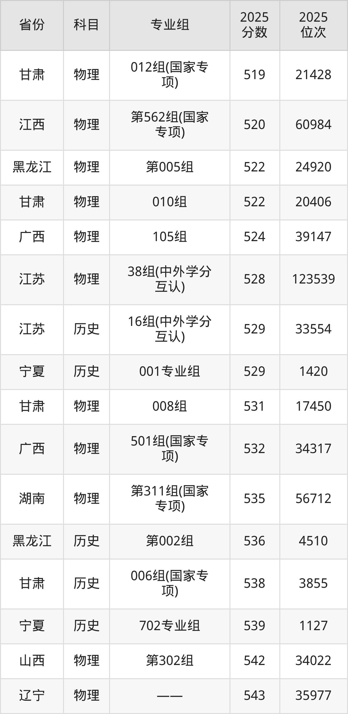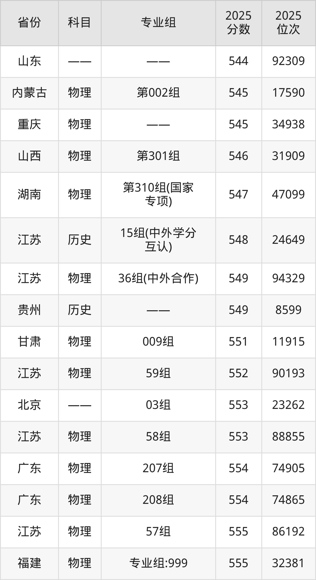 物理类:2025年扬州大学录取最低分是483分(吉林),对应的位次排名是31004名。