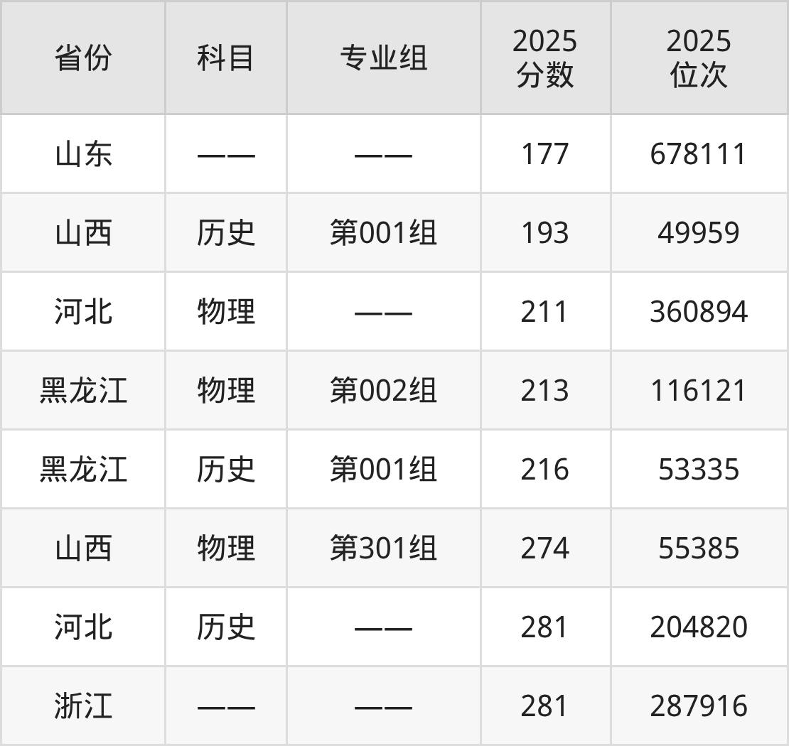 历史类:2025年北京北大方正软件职业技术学院录取最低分是193分(山西),对应的位次排名是49959名。
