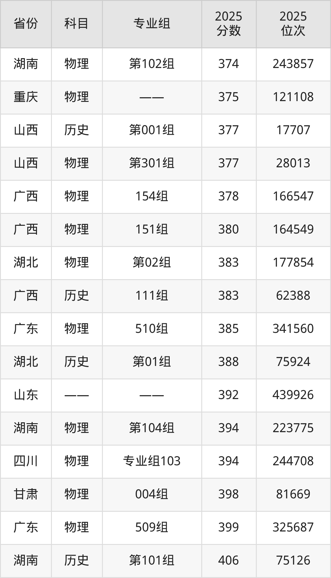 物理类:2025年赣南卫生健康职业学院录取最低分是348分(广西),对应的位次排名是194917名。