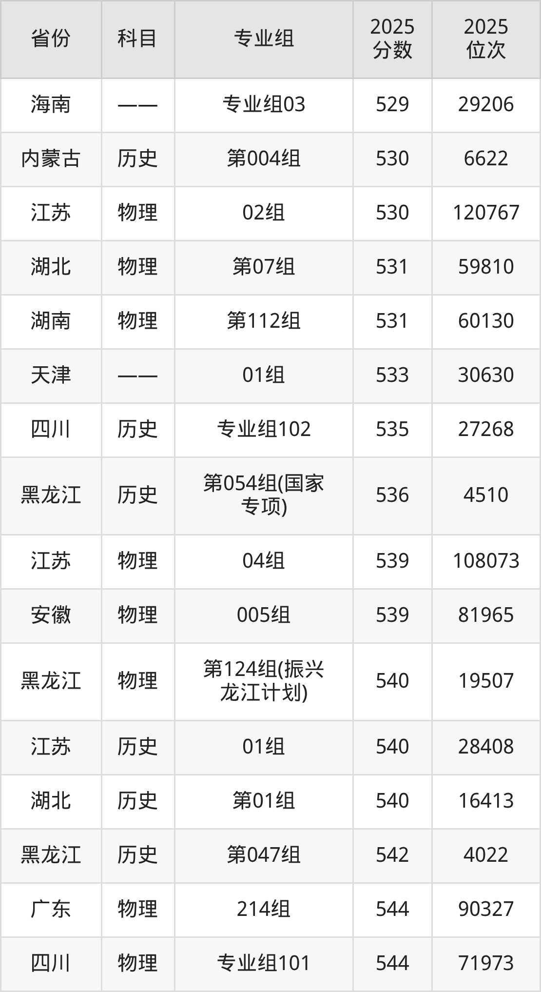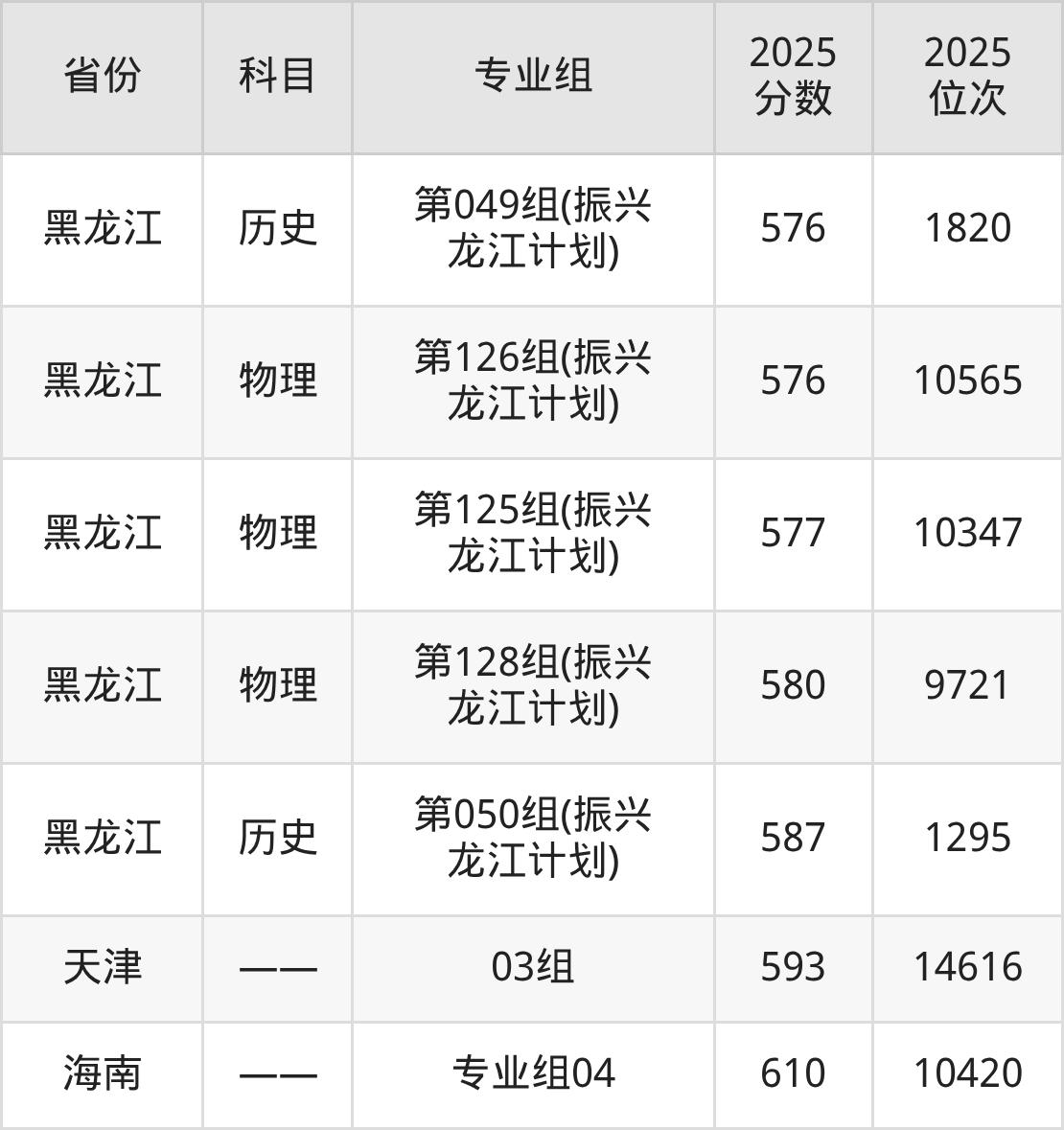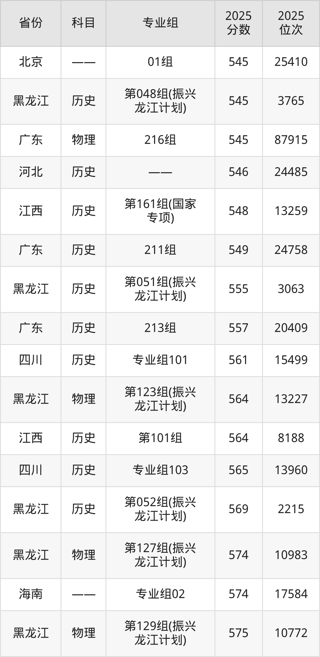 2025年哈尔滨师范大学全国录取分数线一览表: