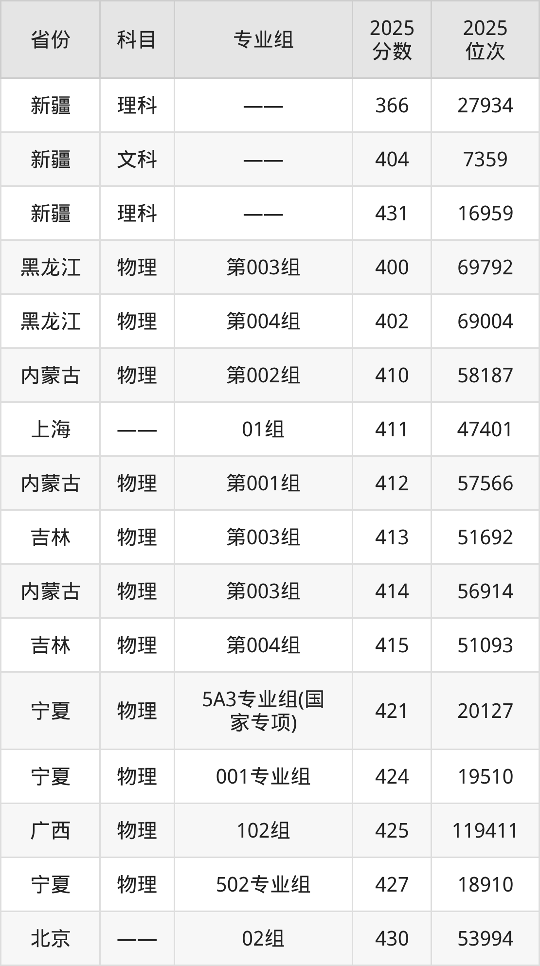 物理类:2025年塔里木大学录取最低分是400分(黑龙江),对应的位次排名是69792名。