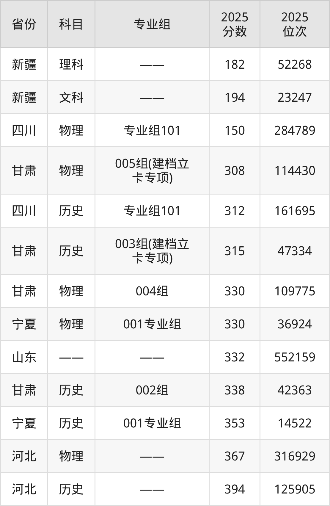 历史类:2025年甘肃财贸职业学院录取最低分是312分(四川),对应的位次排名是161695名。