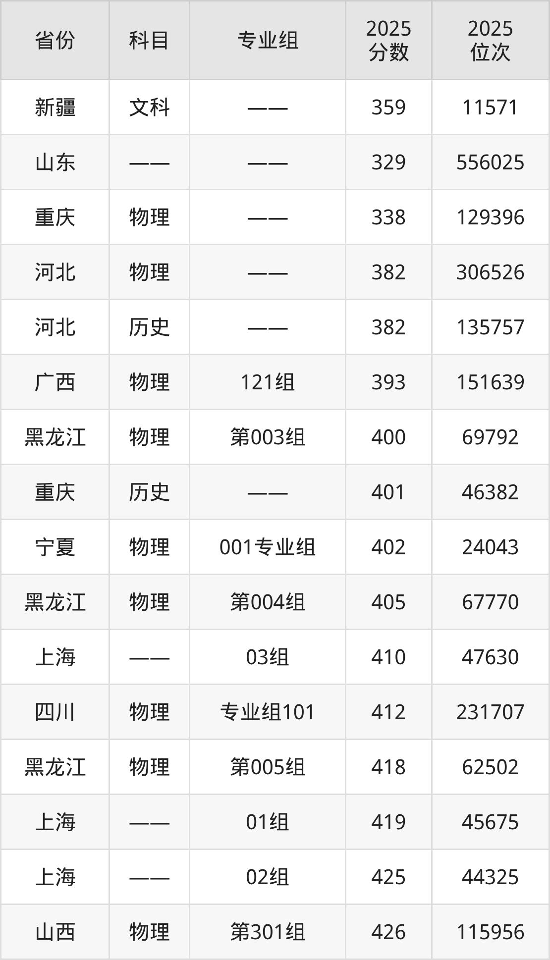 物理类:2025年四川传媒学院录取最低分是338分(重庆),对应的位次排名是129396名。