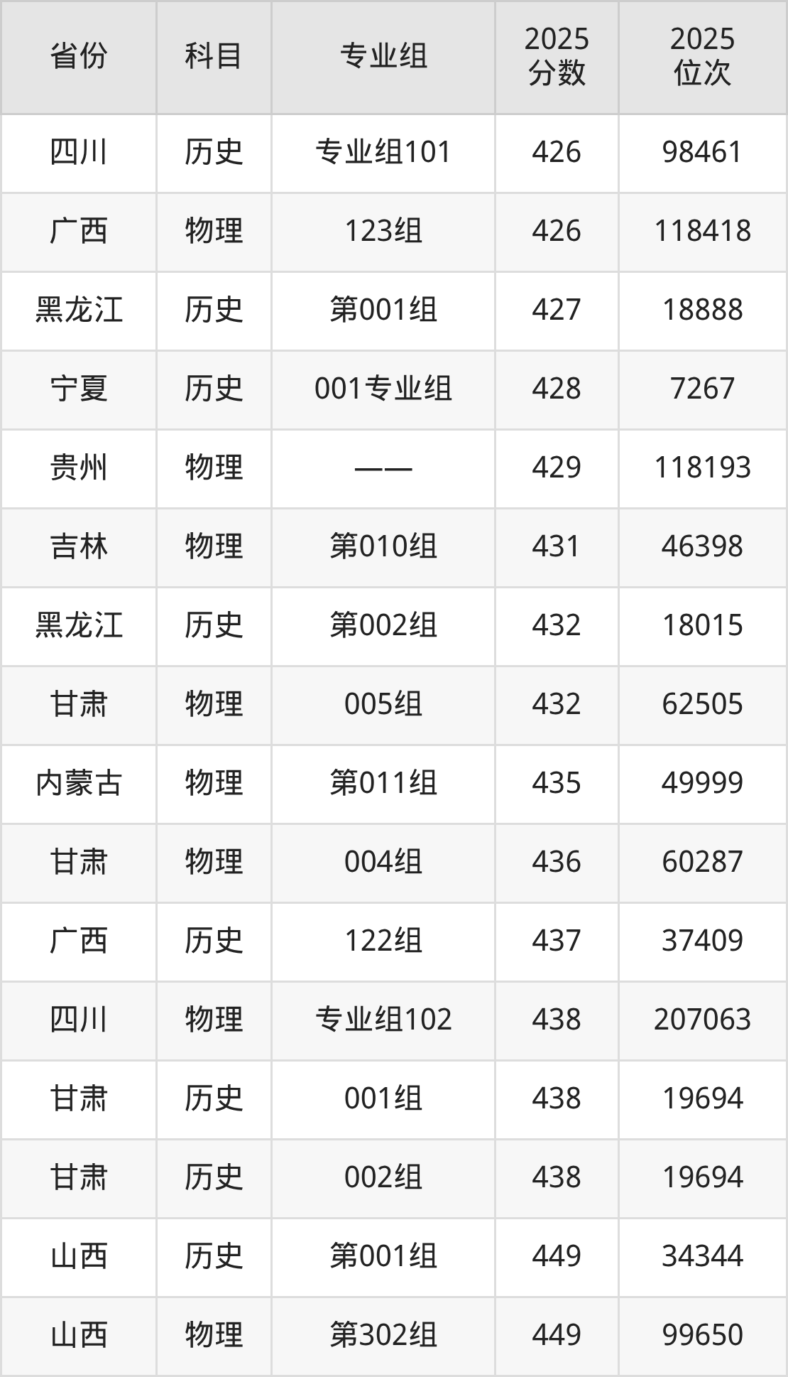 历史类:2025年四川传媒学院省内录取最低分是426分,对应的位次排名是98461名。建议:如果2026年排名超过98461名,那么被该校录取的概率较大。