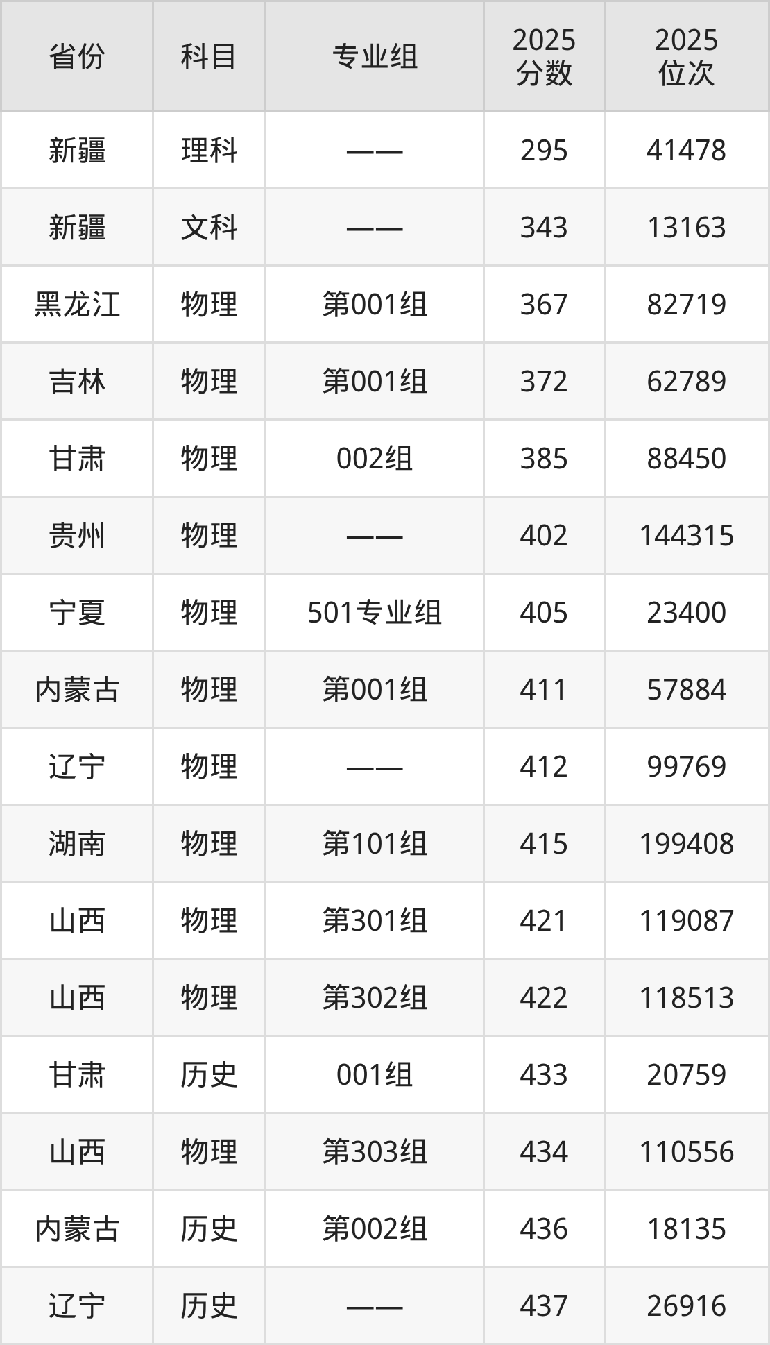 理科:2025年西安建筑科技大学华清学院录取最低分是295分(新疆),对应的位次排名是41478名。