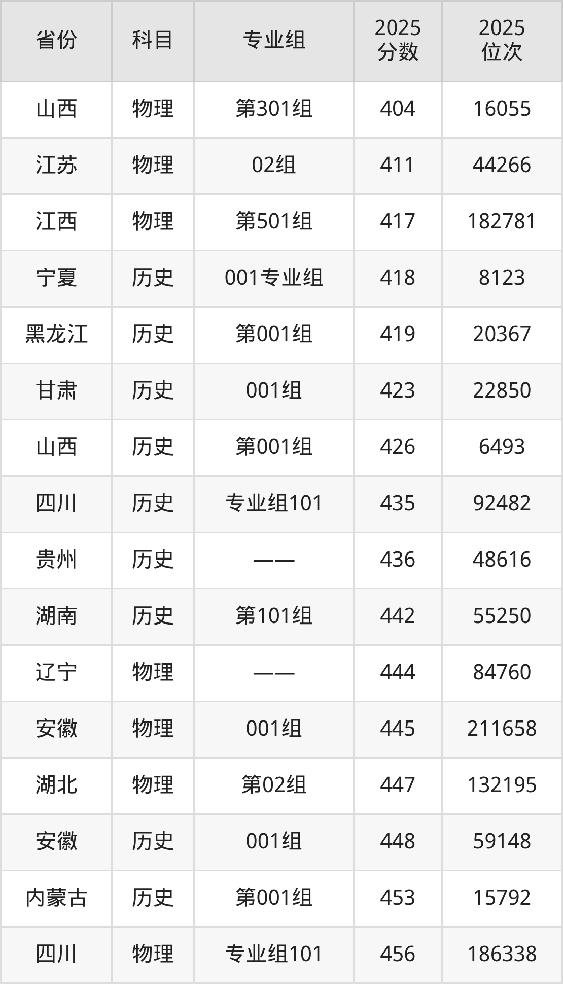 物理类:2025年长春医学高等专科学校录取最低分是361分(广西),对应的位次排名是182865名。