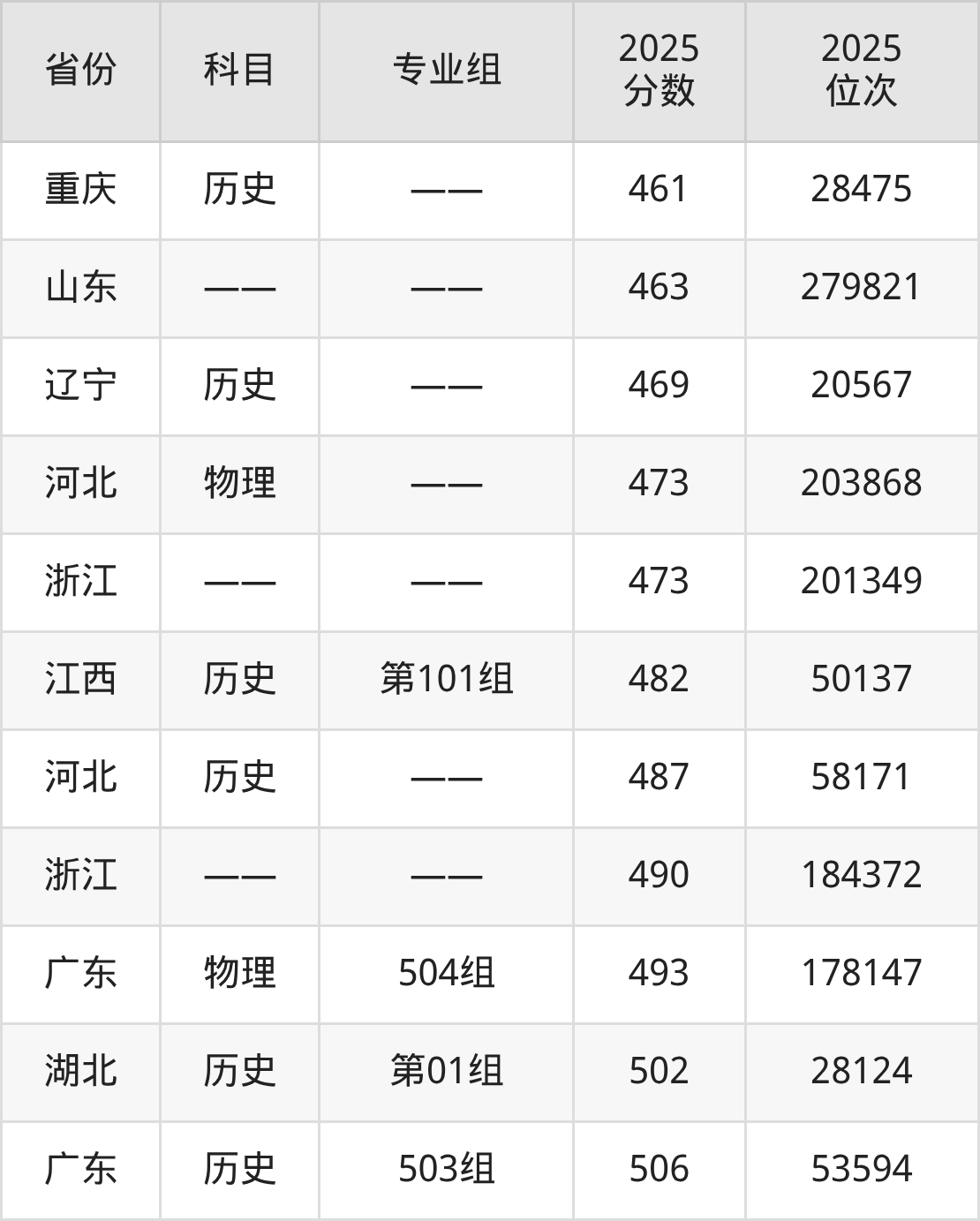 3+3地区:2025年长春医学高等专科学校录取最低分是463分(山东),对应的位次排名是279821名。