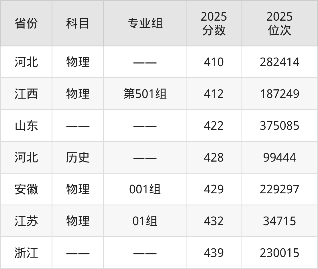 物理类:2025年上海科创职业技术学院录取最低分是410分(河北),对应的位次排名是282414名。