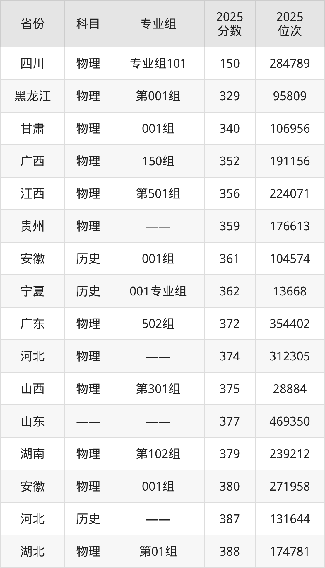 物理类:2025年海南卫生健康职业学院录取最低分是150分(四川),对应的位次排名是284789名。