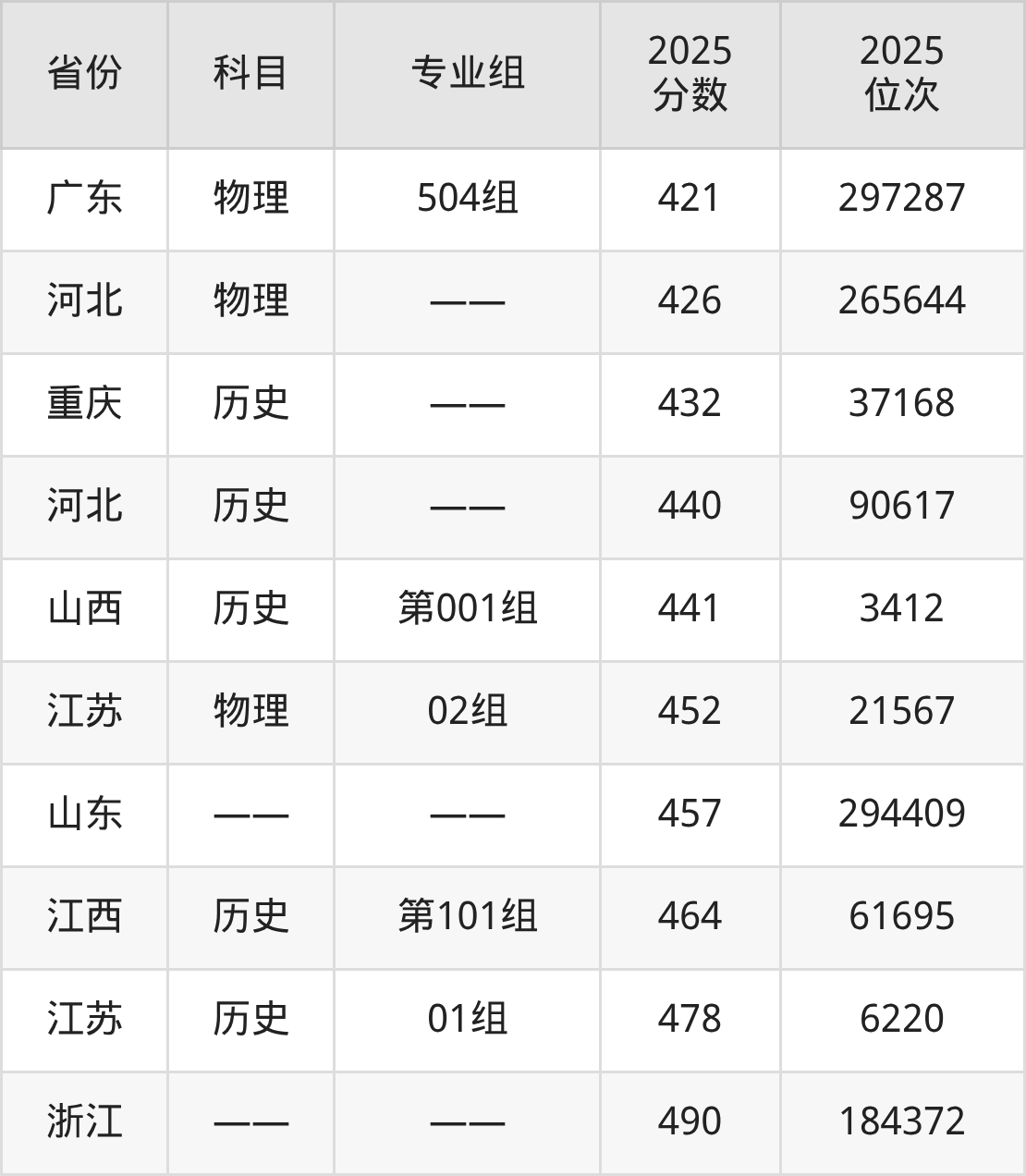 物理类:2025年安徽审计职业学院录取最低分是347分(贵州),对应的位次排名是183129名。