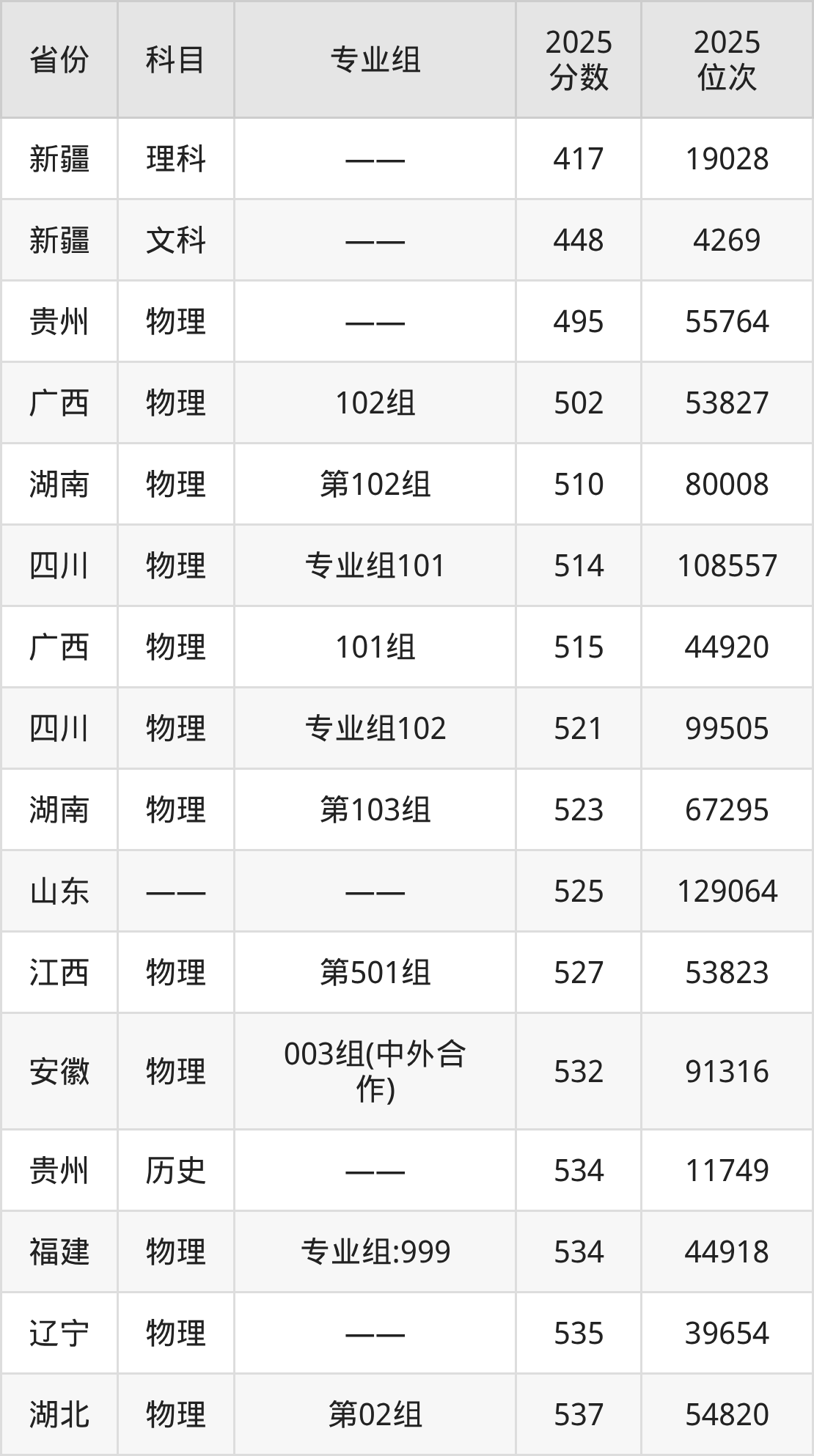 文科:2025年浙大城市学院录取最低分是448分(新疆),对应的位次排名是4269名。