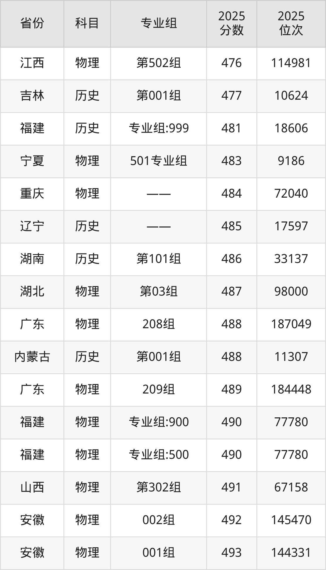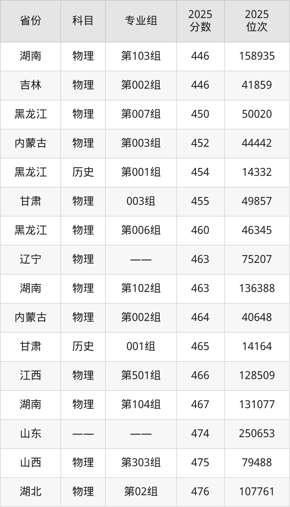 3+3地区:2025年黑龙江工程学院录取最低分是474分(山东),对应的位次排名是250653名。
