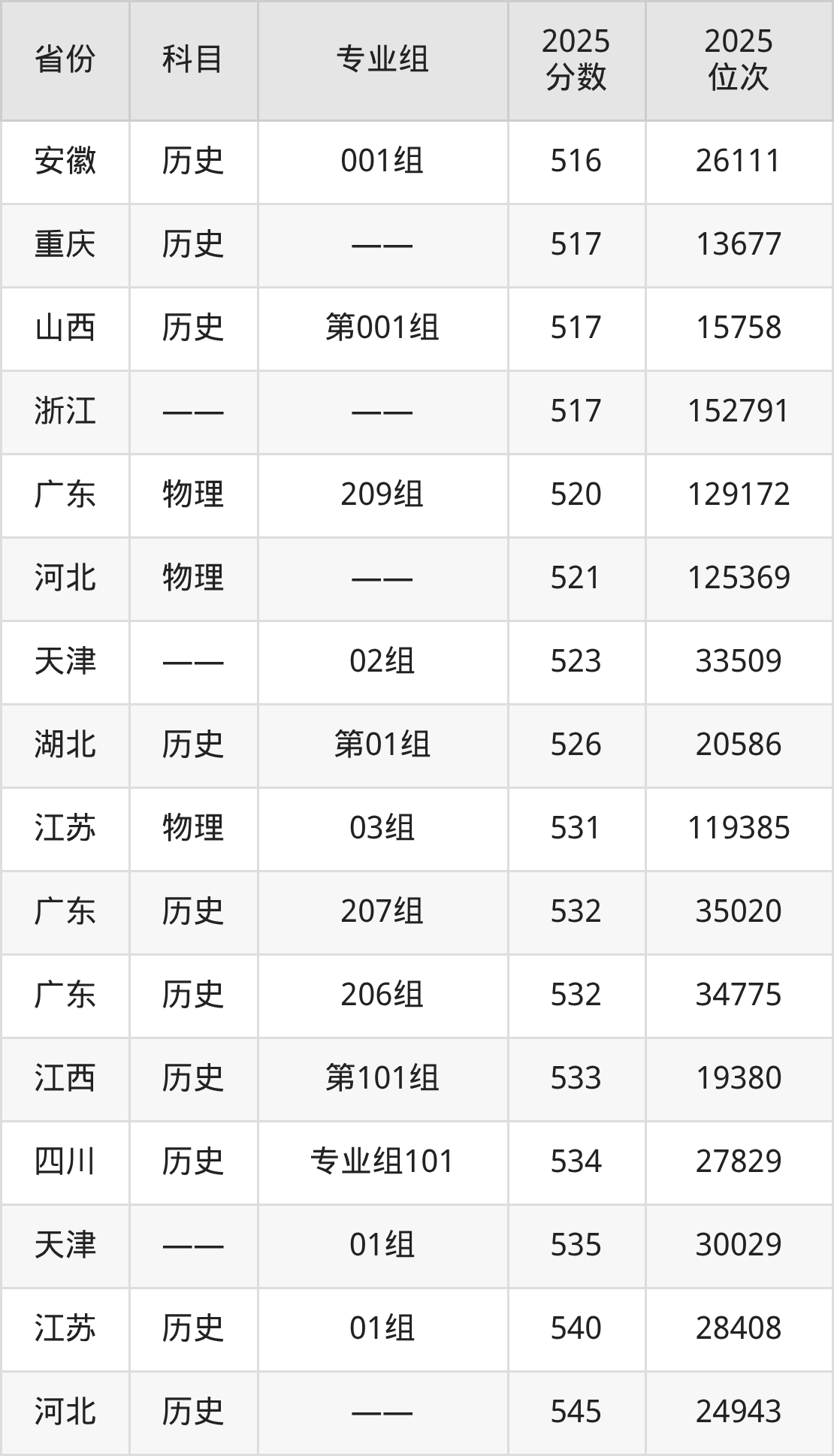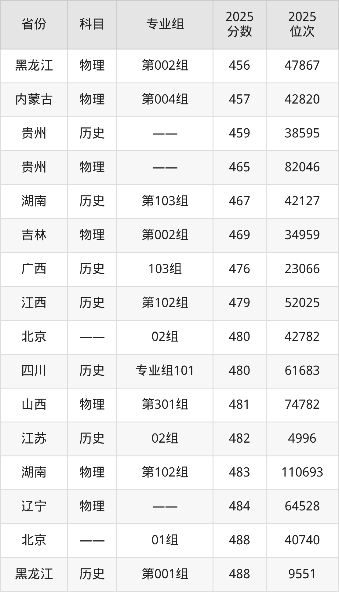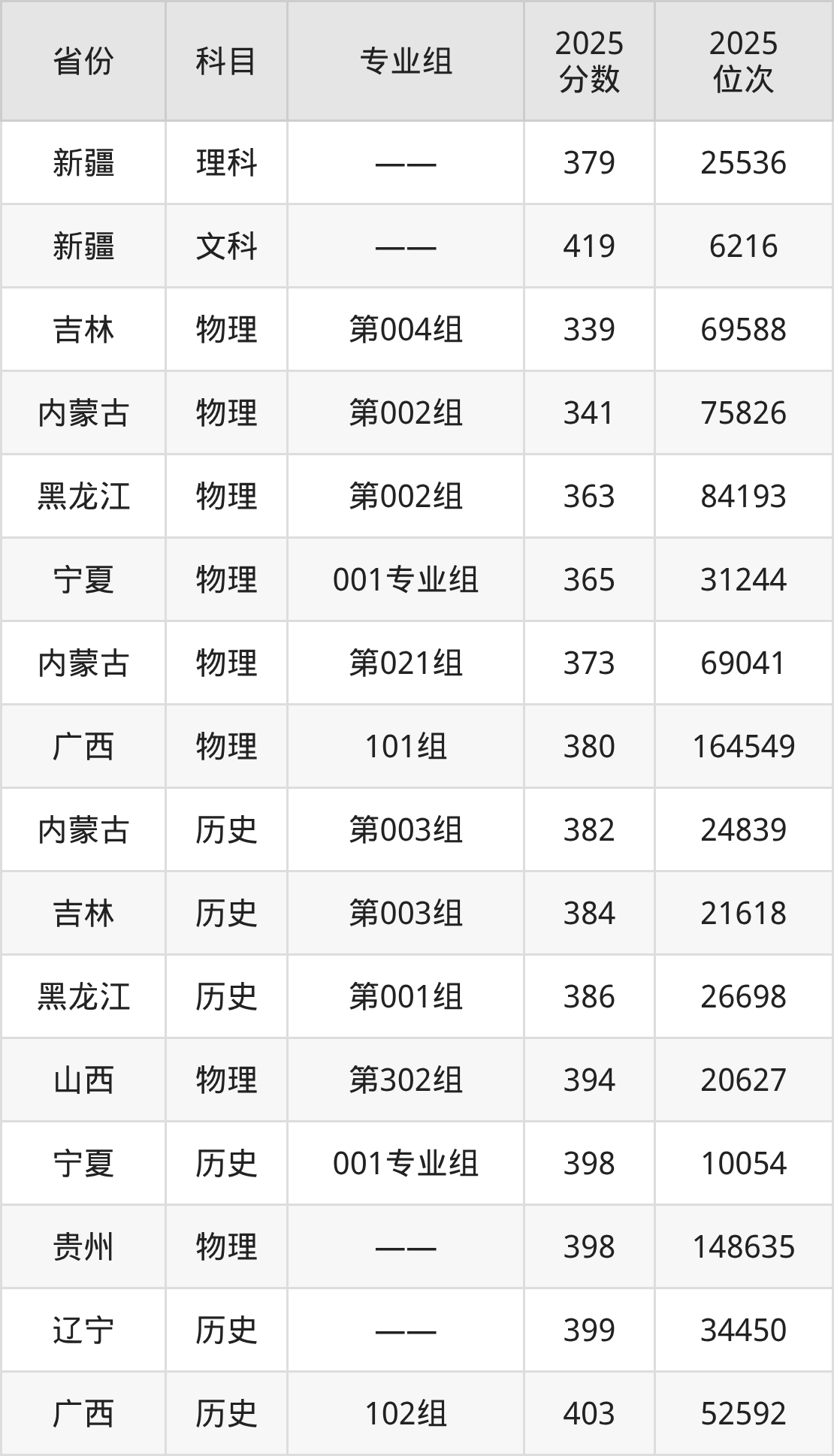 理科:2025年民政职业大学录取最低分是379分(新疆),对应的位次排名是25536名。