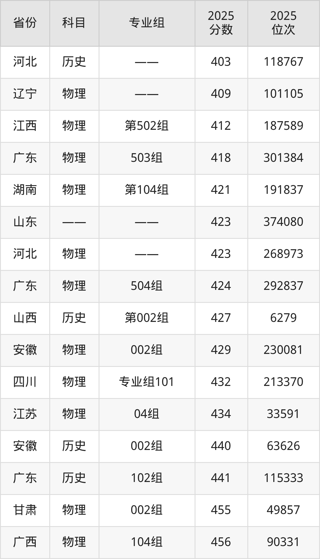 3+3地区:2025年民政职业大学录取最低分是423分(山东),对应的位次排名是374080名。