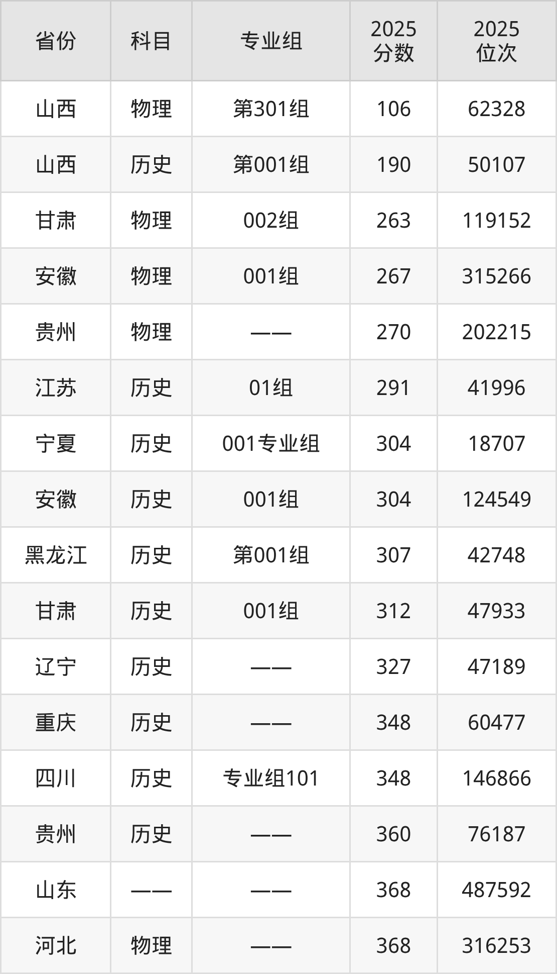 物理类:2025年太原幼儿师范高等专科学校录取最低分是263分(甘肃),对应的位次排名是119152名。