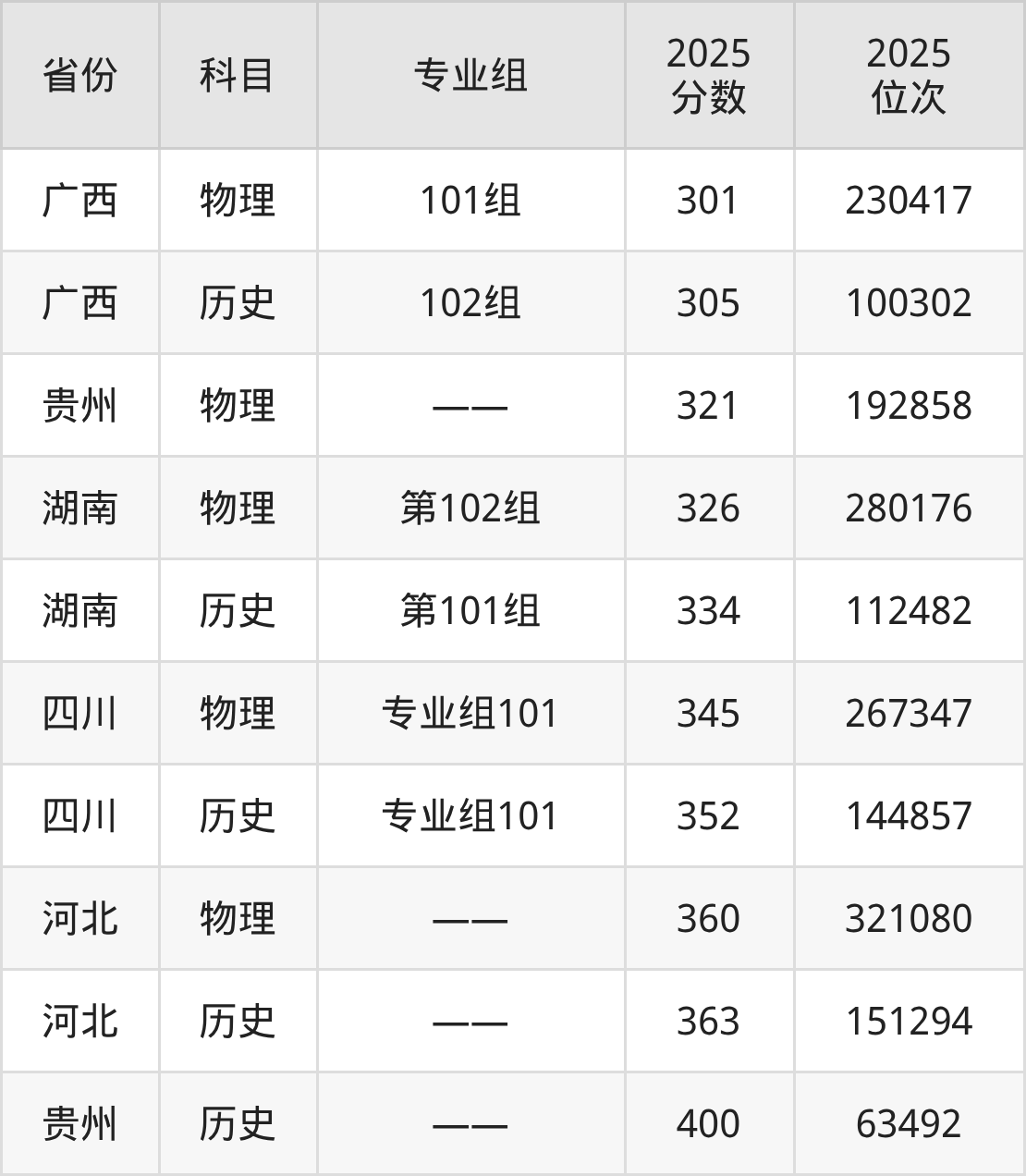 物理类:2025年百色职业学院录取最低分是321分(贵州),对应的位次排名是192858名。