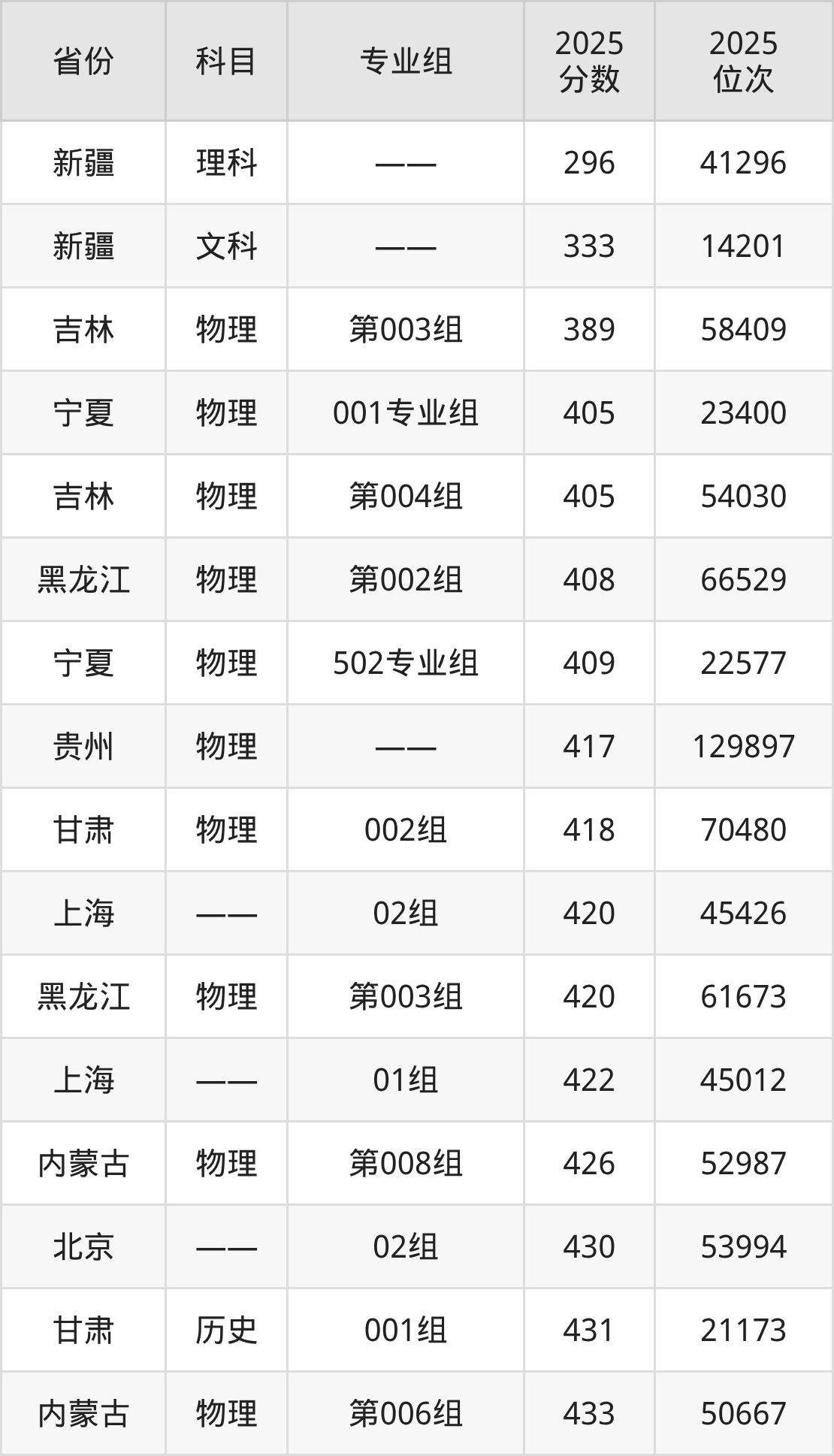 3+3地区:2025年珠海科技学院录取最低分是420分(上海),对应的位次排名是45426名。