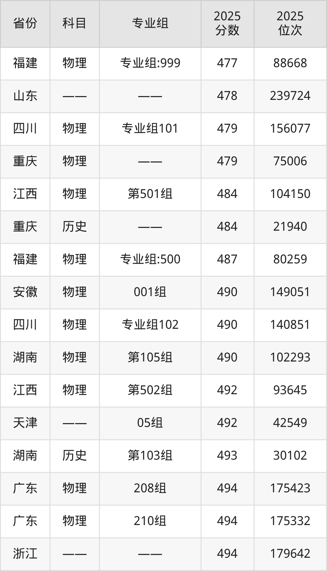 物理类:2025年珠海科技学院省内录取最低分是494分,对应的位次排名是175423名。建议:如果2026年排名超过175423名,那么被该校录取的概率较大。