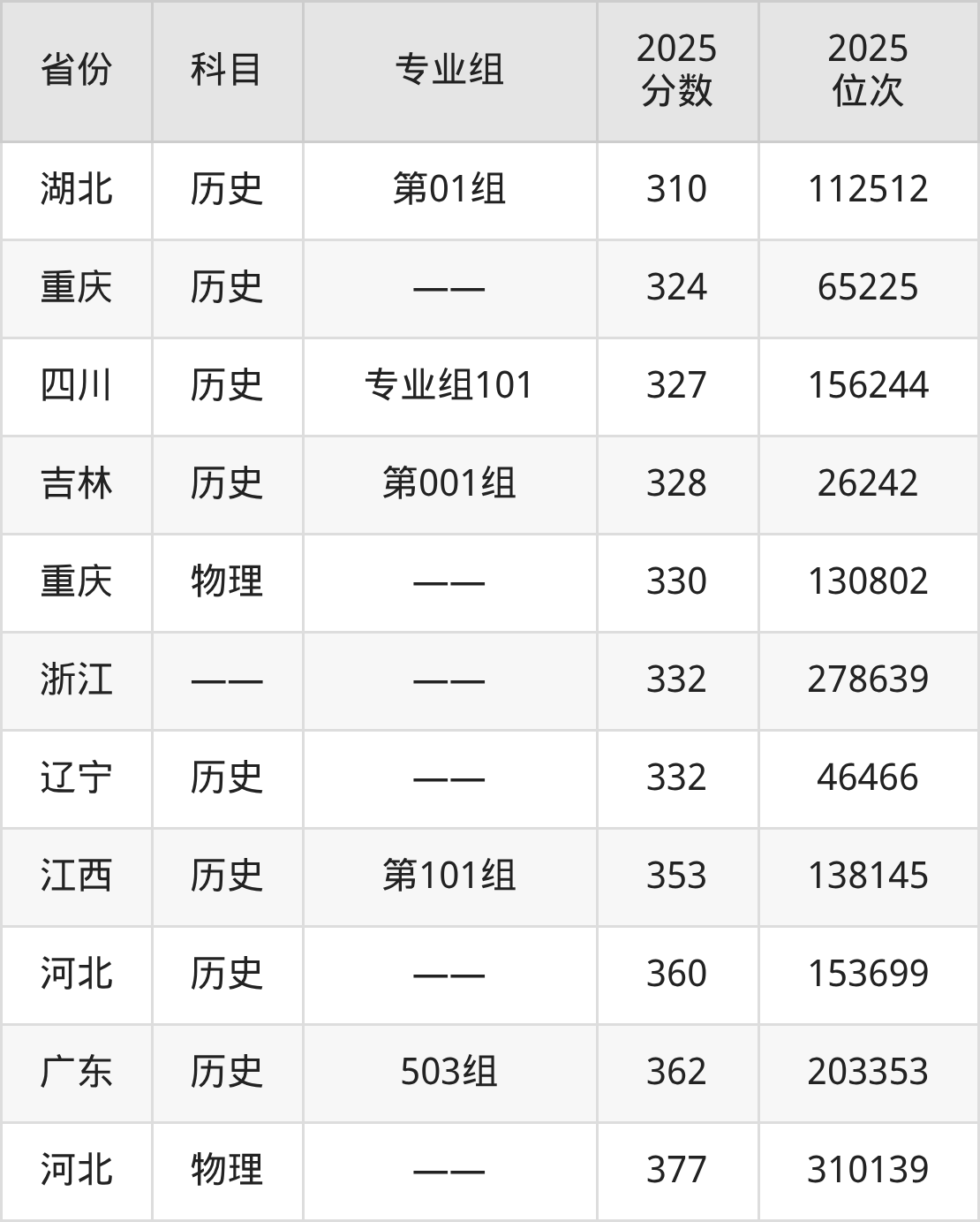 2025年佳木斯职业学院全国排名第573位,2025年录取分数线最低150分(位次284789)。本文将展示佳木斯职业学院在各省最低录取分数线汇总,供2026届想要报考该校的考生查阅。
