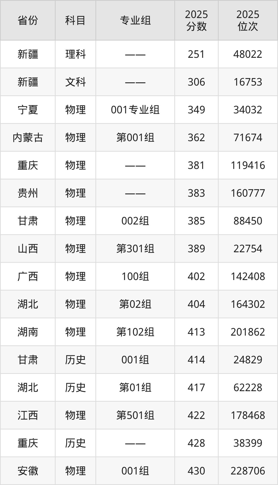 理科:2025年四川交通职业技术学院录取最低分是251分(新疆),对应的位次排名是48022名。