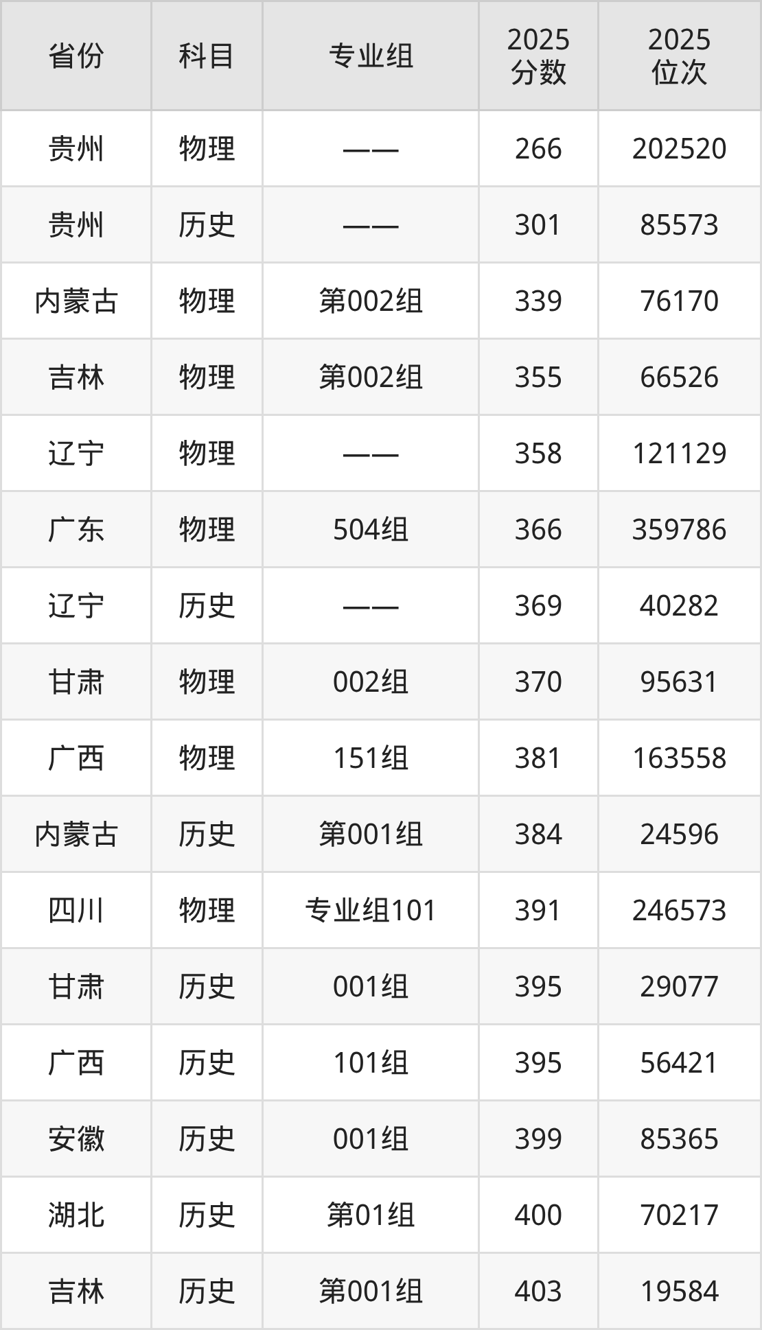 物理类:2025年湖南水利水电职业技术学院录取最低分是266分(贵州),对应的位次排名是202520名。
