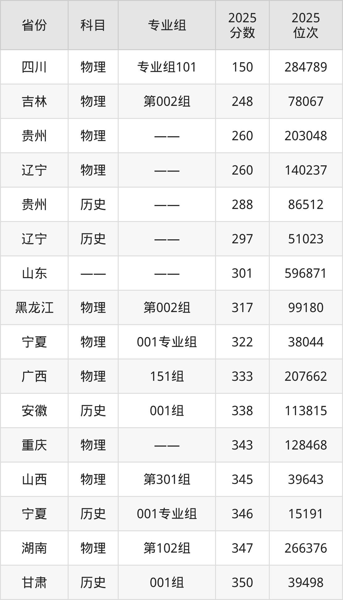 物理类:2025年安阳职业技术学院录取最低分是150分(四川),对应的位次排名是284789名。