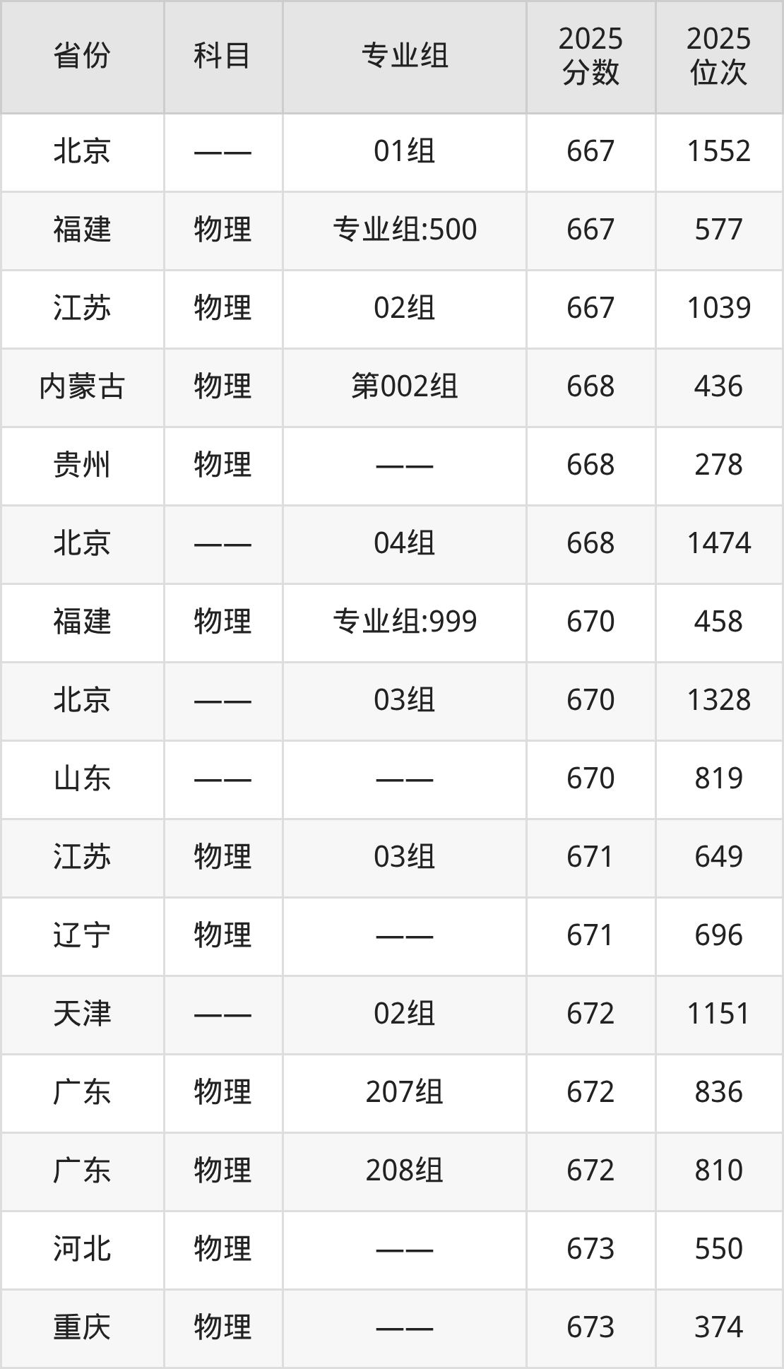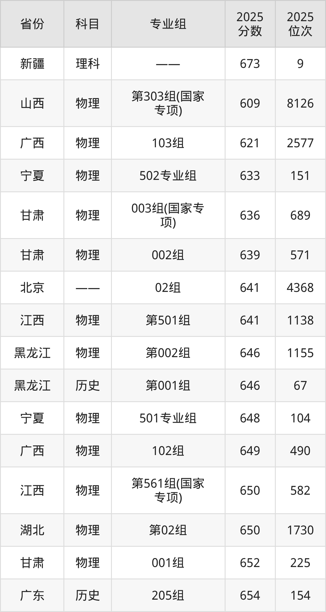 理科:2025年北京大学医学部录取最低分是673分(新疆),对应的位次排名是9名。