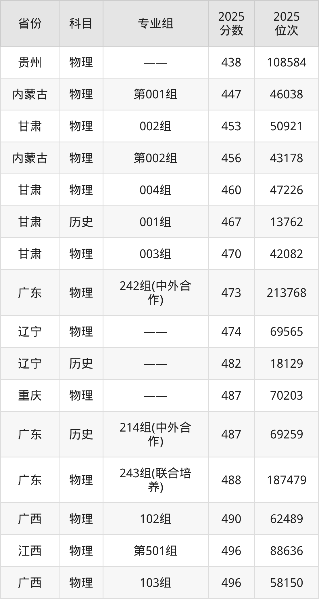 物理类:2025年惠州学院录取最低分是438分(贵州),对应的位次排名是108584名。