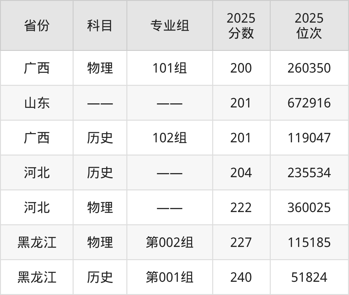 3+3地区:2025年桂林山水职业学院录取最低分是201分(山东),对应的位次排名是672916名。