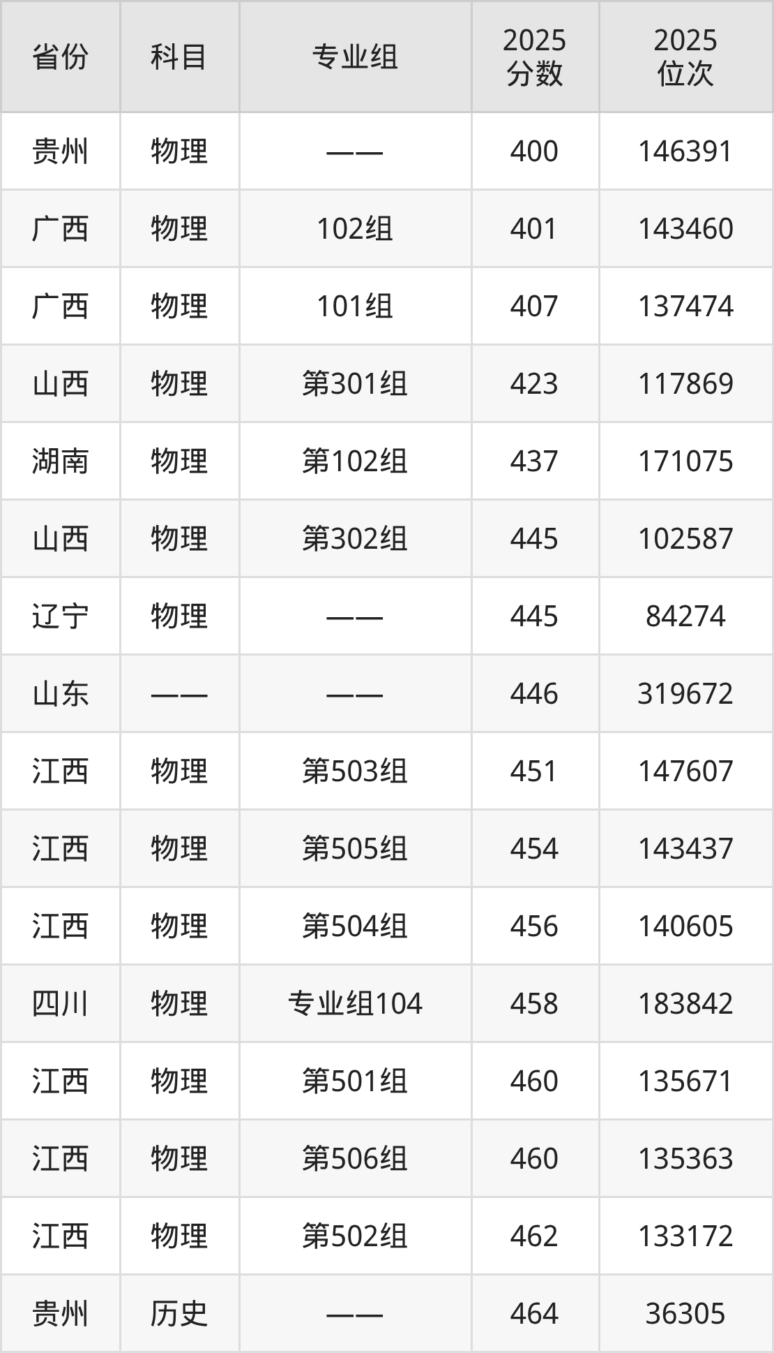 物理类:2025年贵阳信息科技学院录取最低分是401分(广西),对应的位次排名是143460名。