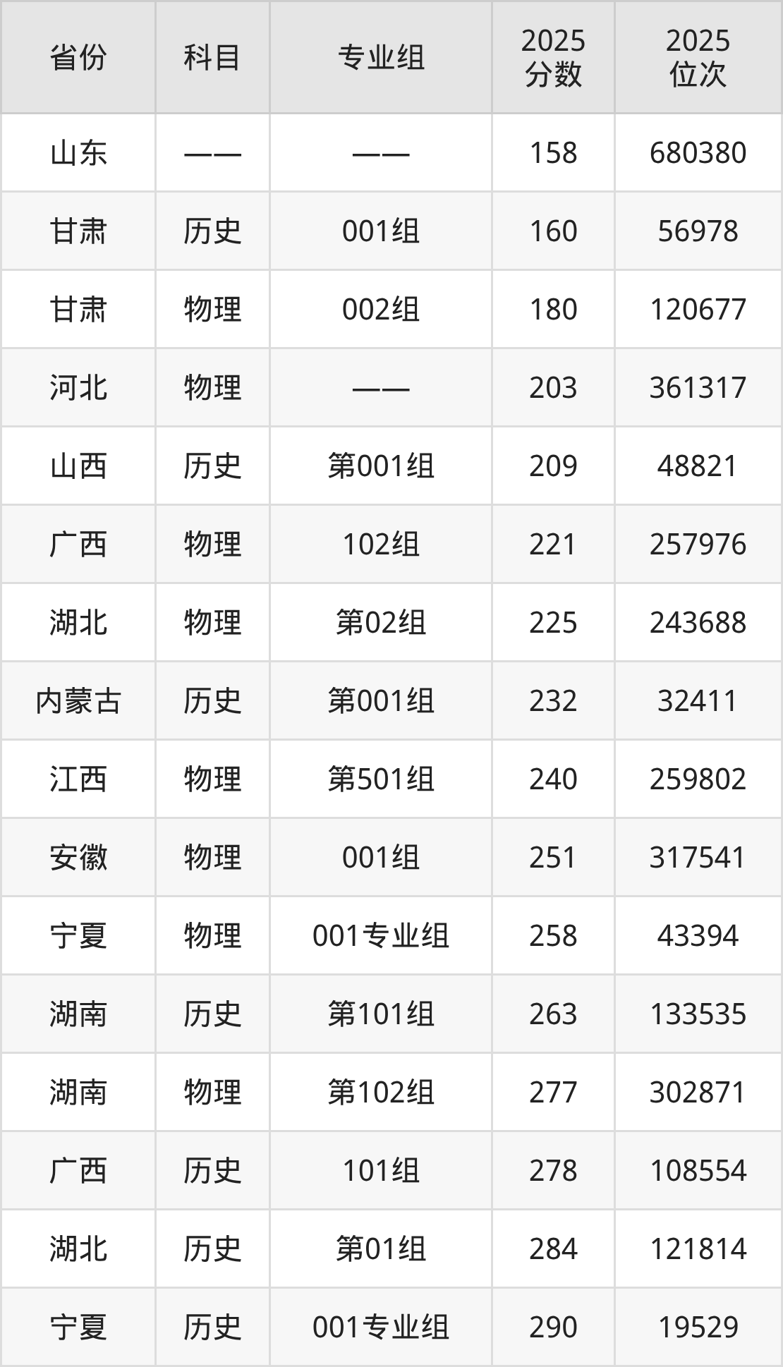 2025年南阳职业学院全国排名第1165位,2025年录取分数线最低158分(位次680380)。本文将展示南阳职业学院在各省最低录取分数线汇总,供2026届想要报考该校的考生查阅。