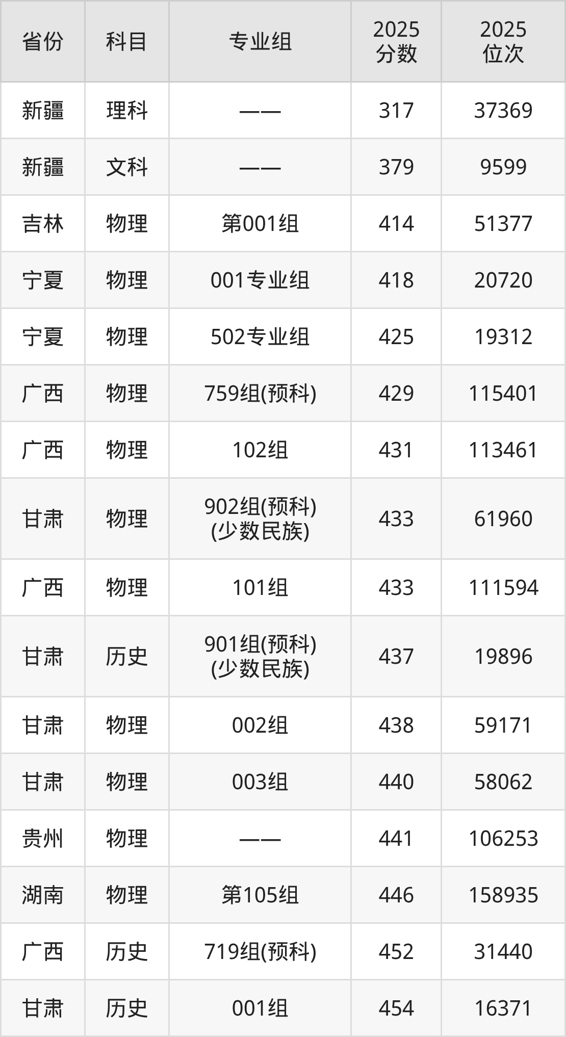 文科:2025年龙岩学院录取最低分是379分(新疆),对应的位次排名是9599名。