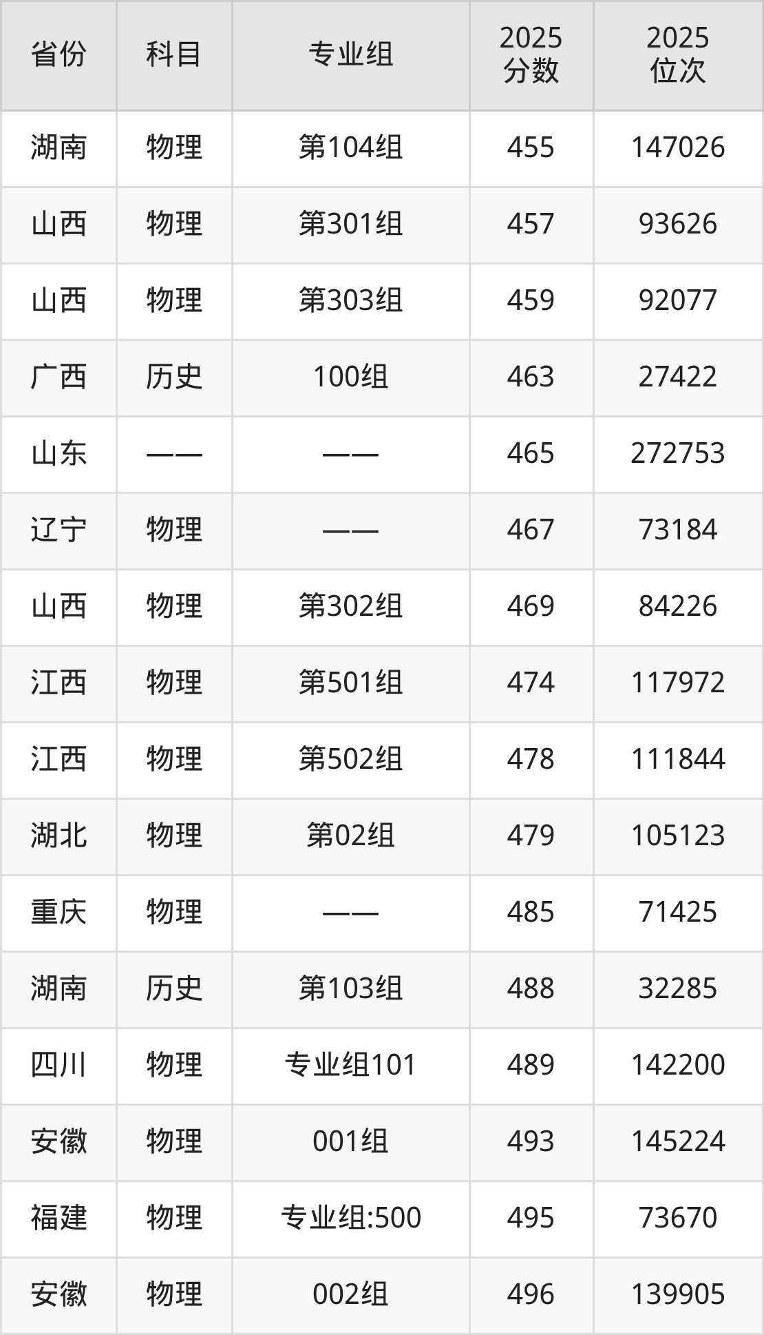 3+3地区:2025年龙岩学院录取最低分是465分(山东),对应的位次排名是272753名。