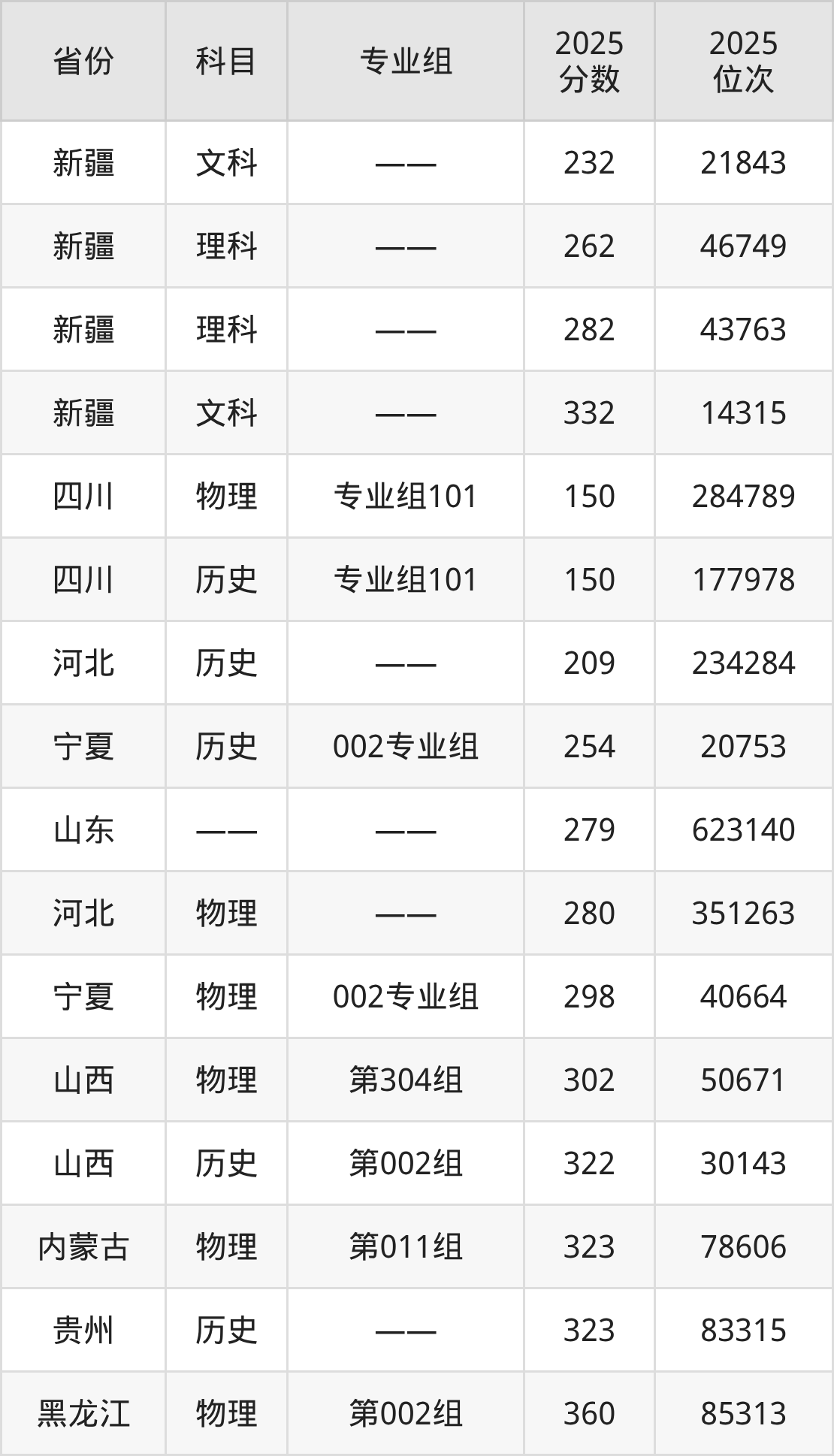 2025年西安翻译学院全国排名第773位,2025年录取分数线最低150分(位次284789)。本文将展示西安翻译学院在各省最低录取分数线汇总,供2026届想要报考该校的考生查阅。