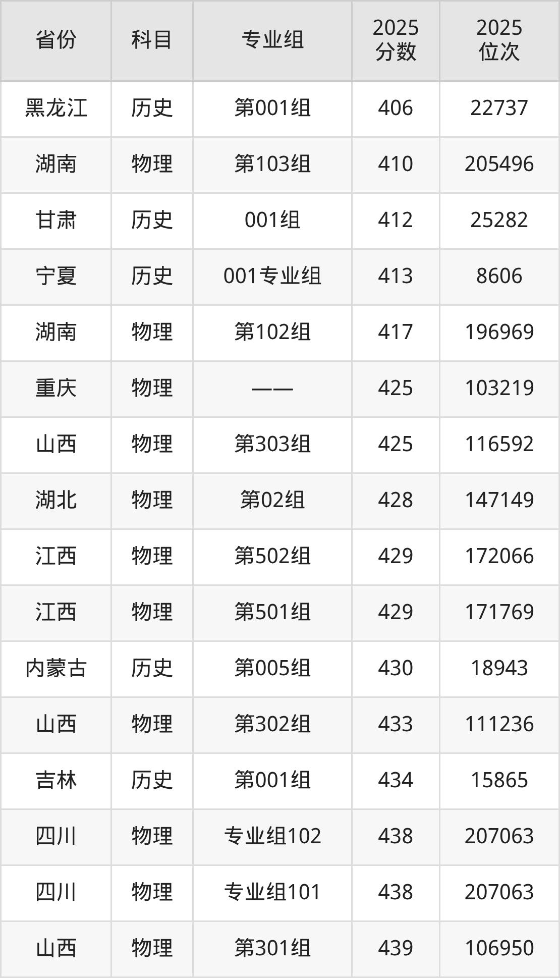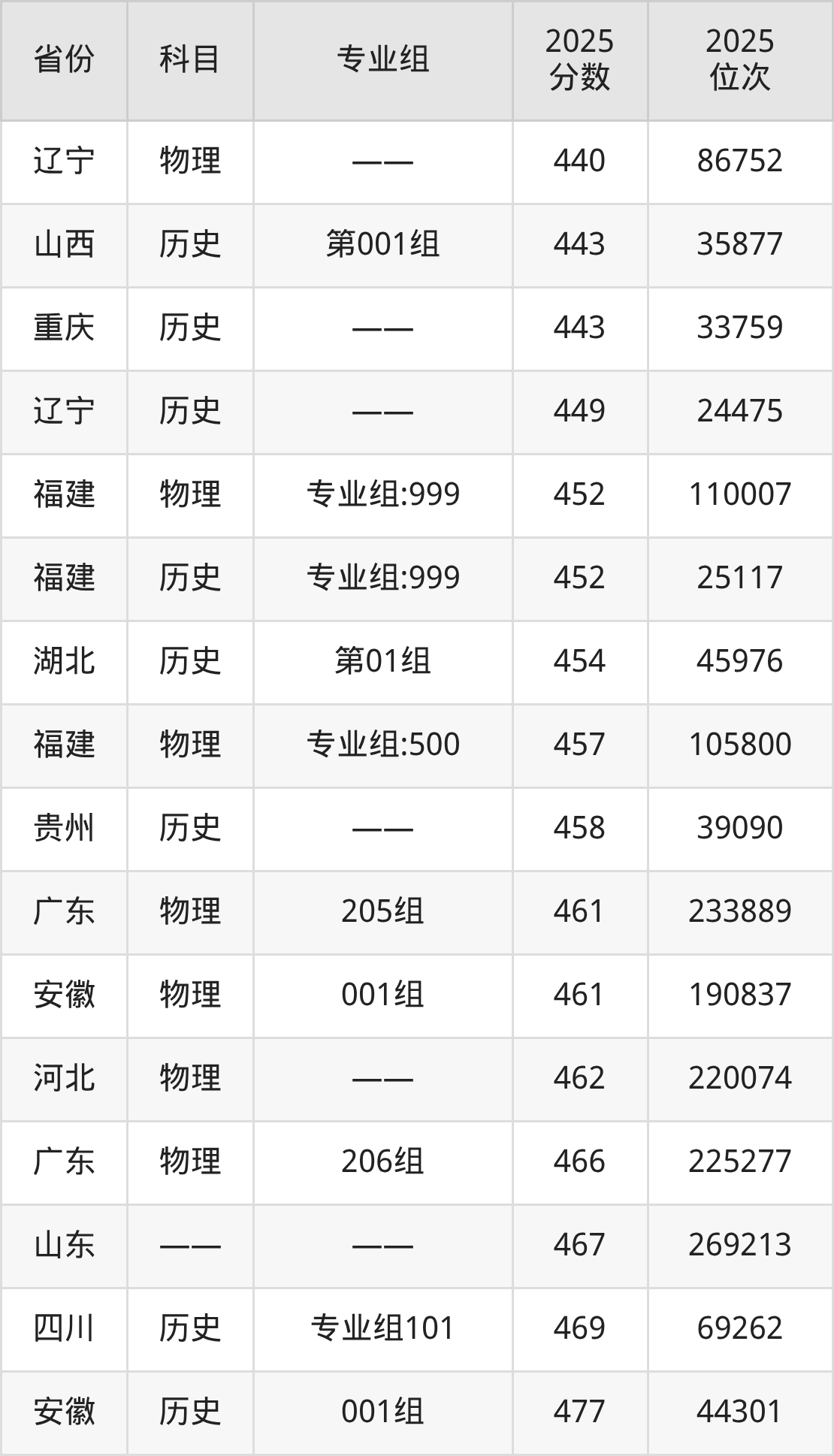 物理类:2025年西安翻译学院录取最低分是150分(四川),对应的位次排名是284789名。