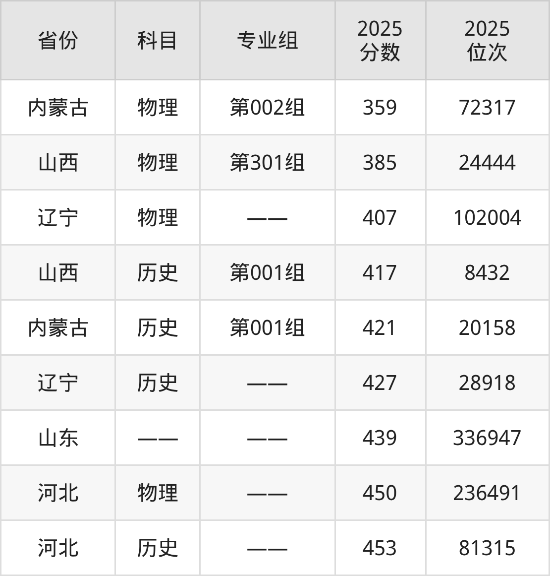 历史类:2025年北京财贸职业学院录取最低分是417分(山西),对应的位次排名是8432名。