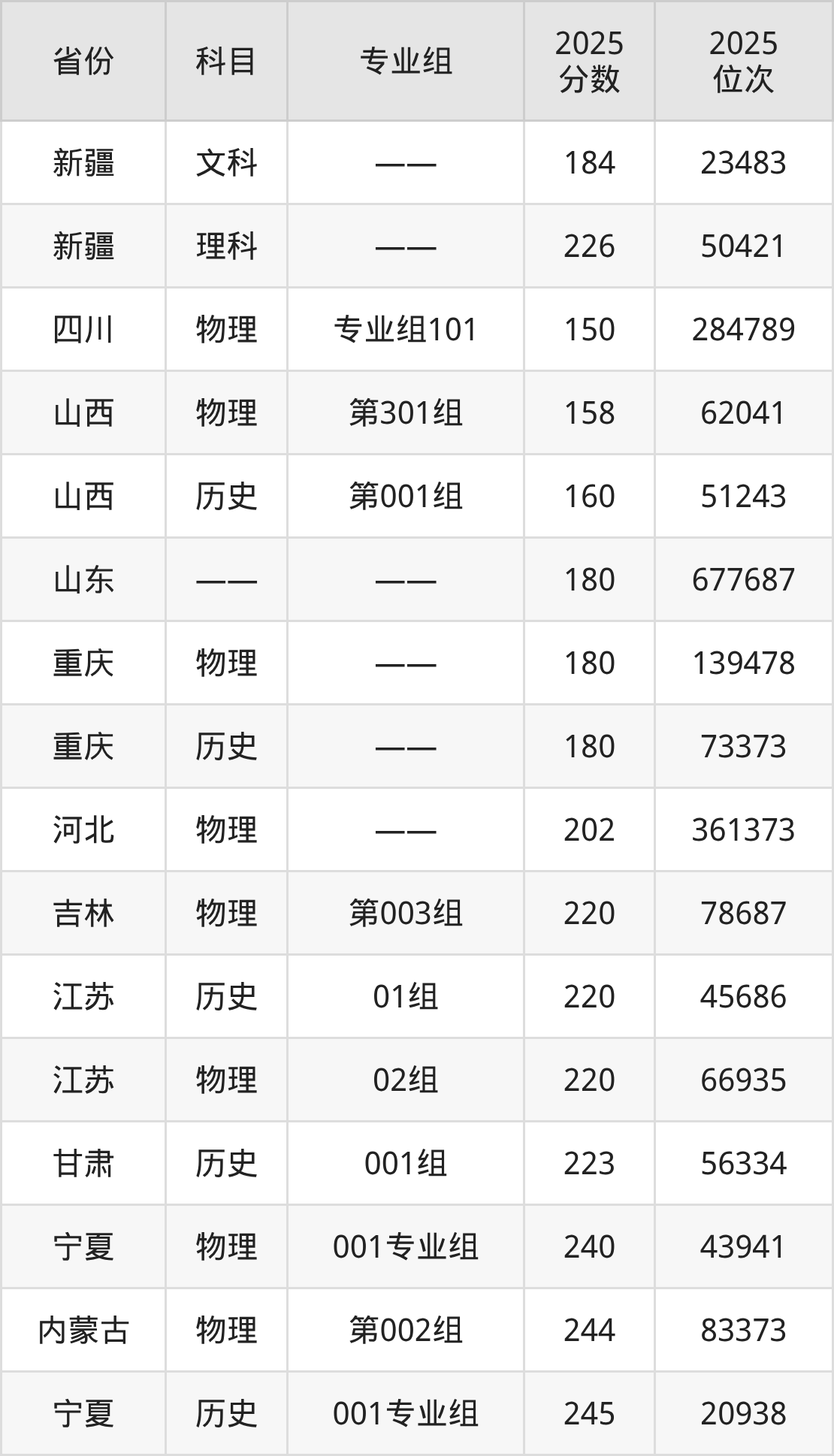 文科:2025年石家庄医学高等专科学校录取最低分是184分(新疆),对应的位次排名是23483名。